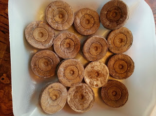 This is where I branch off and do my own thing. I use compressed peat pots for the seedlings.