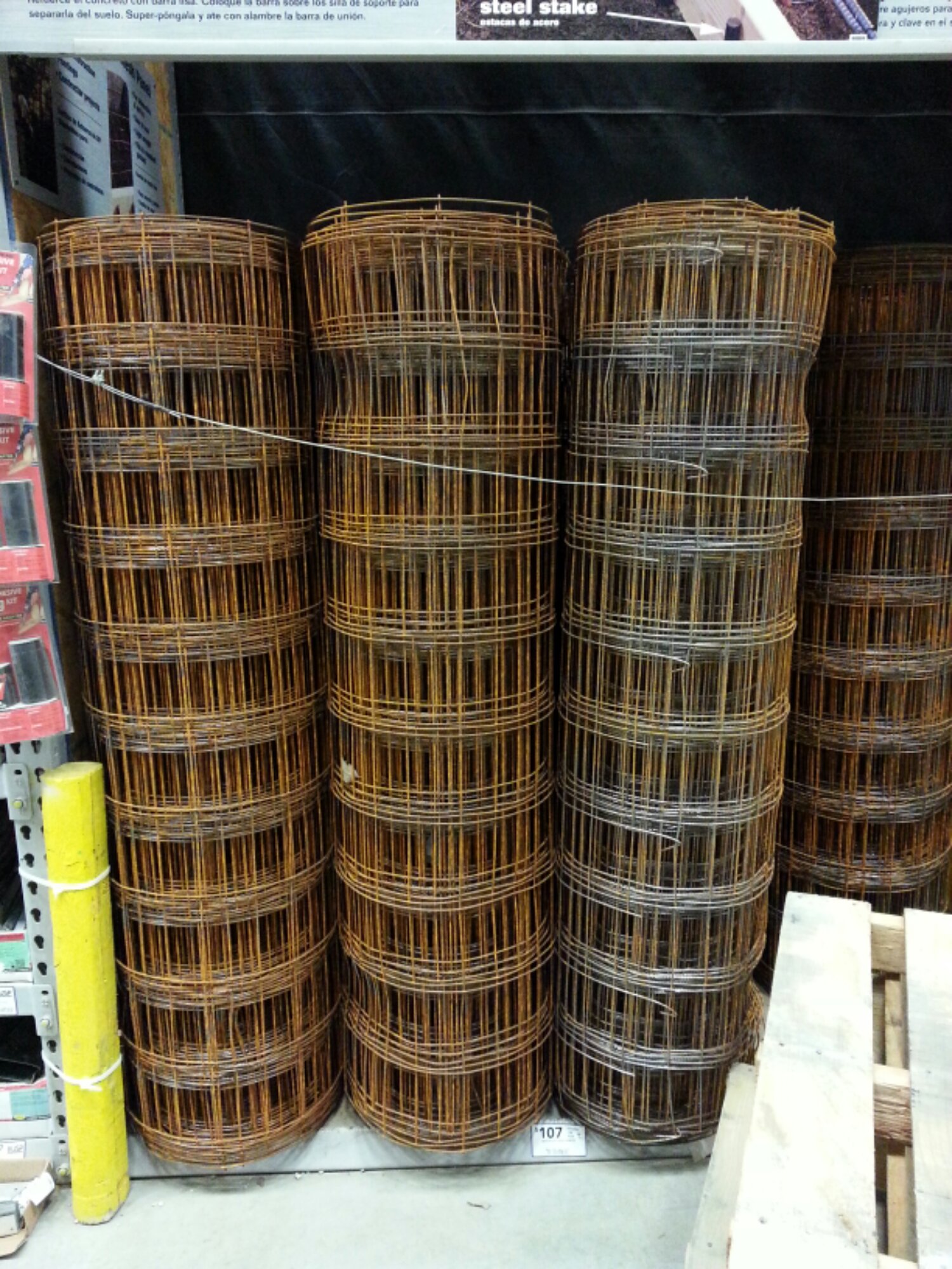 You can cut this into smaller sections and bend them into a triangular or square shape and make tomato cages. They also sell this by the roll so it’s already in a circular shape, but it gets expensive to buy this in 150 foot lengths. It’s still only about 75 cents a foot though, so if you know other gardeners: you could all go in on a roll.