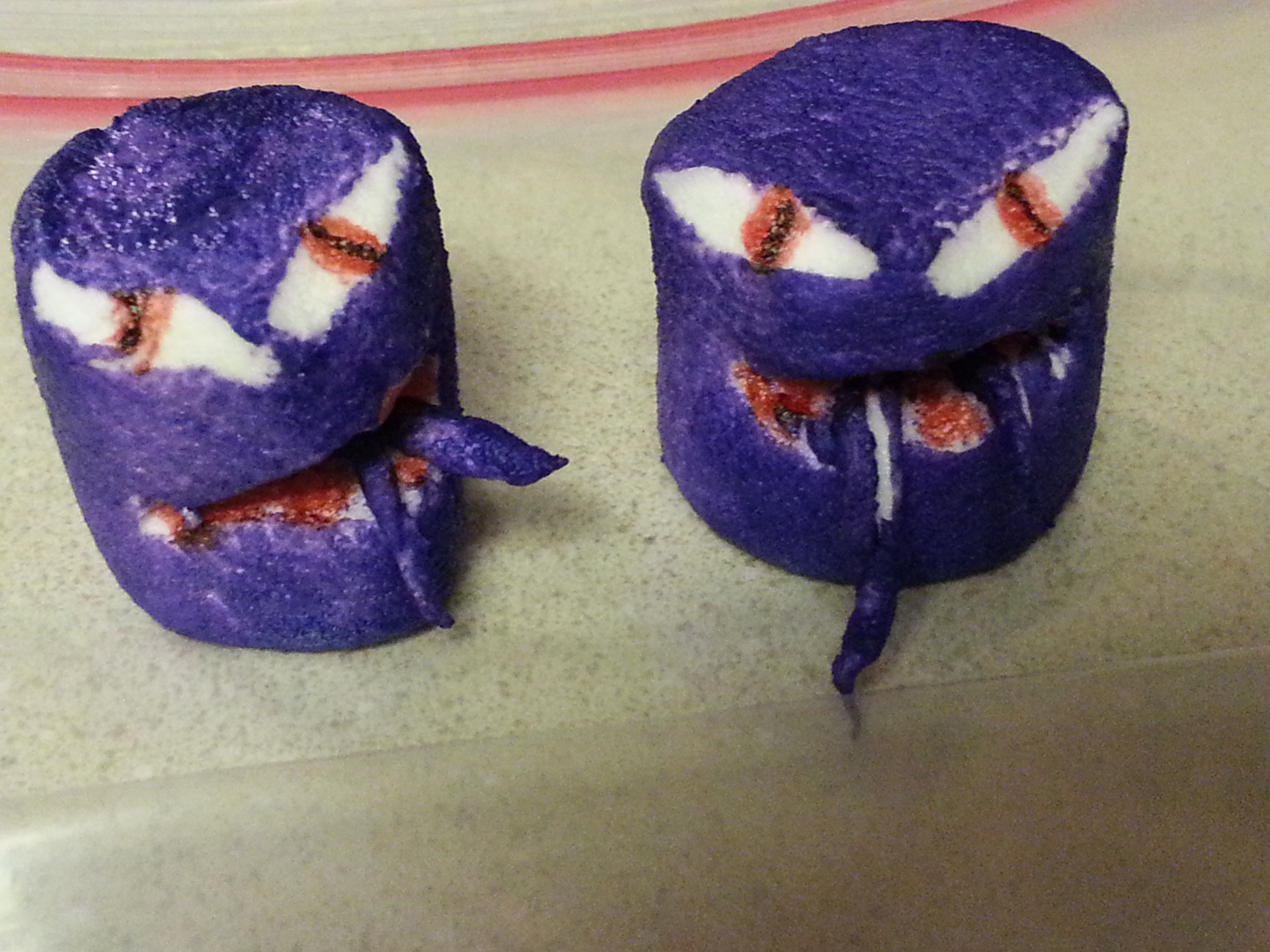 All I have to make these are some food markers and aerosol cake frosting dye colors (these are in cake decorating isles at hobby stores), clean scissors, toothpicks (currently just for my seven year old because he is old enough not to just bite into them) and food coloring added to bags of powdered sugar. I will create a post on my techniques in the future.
