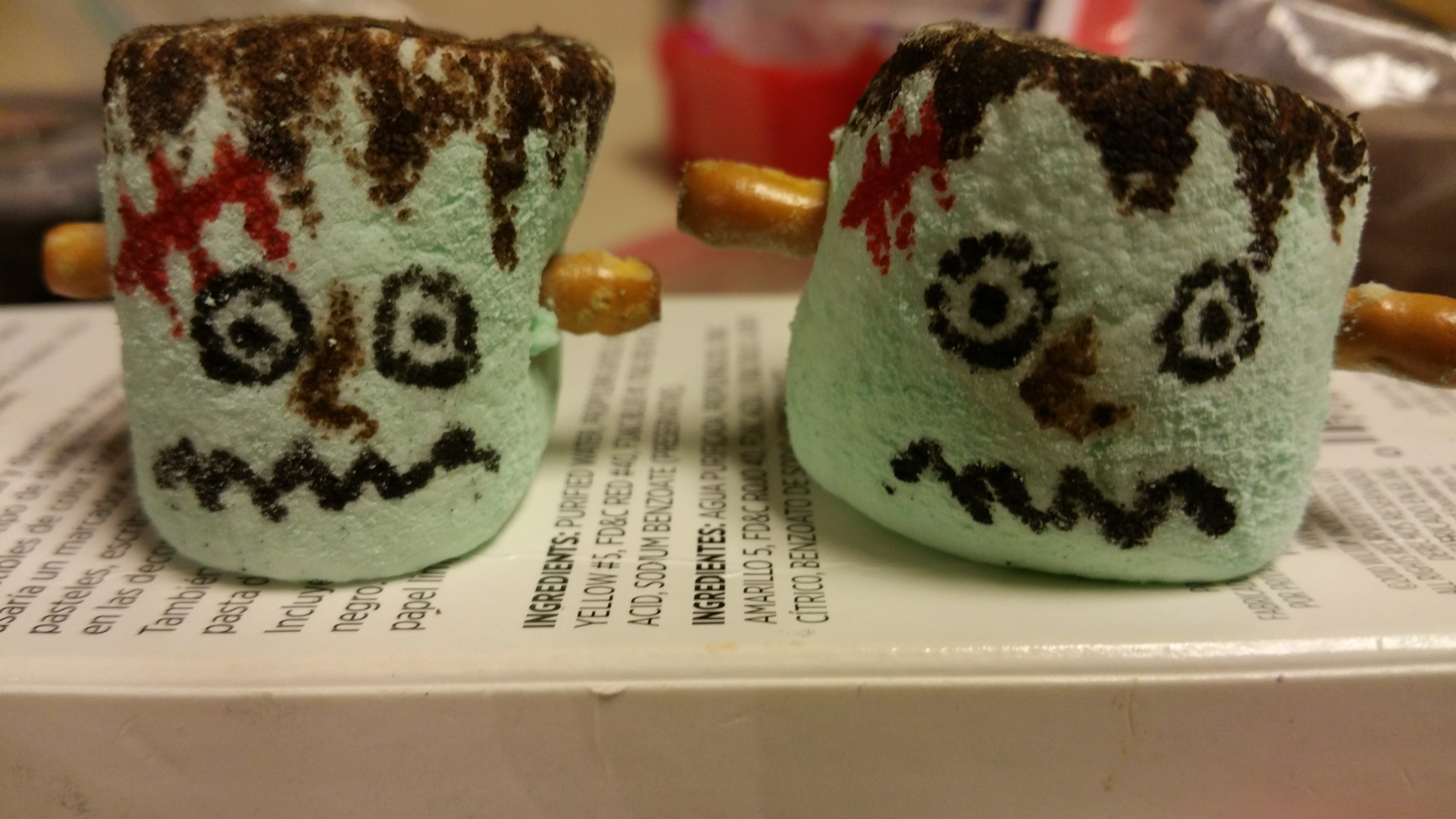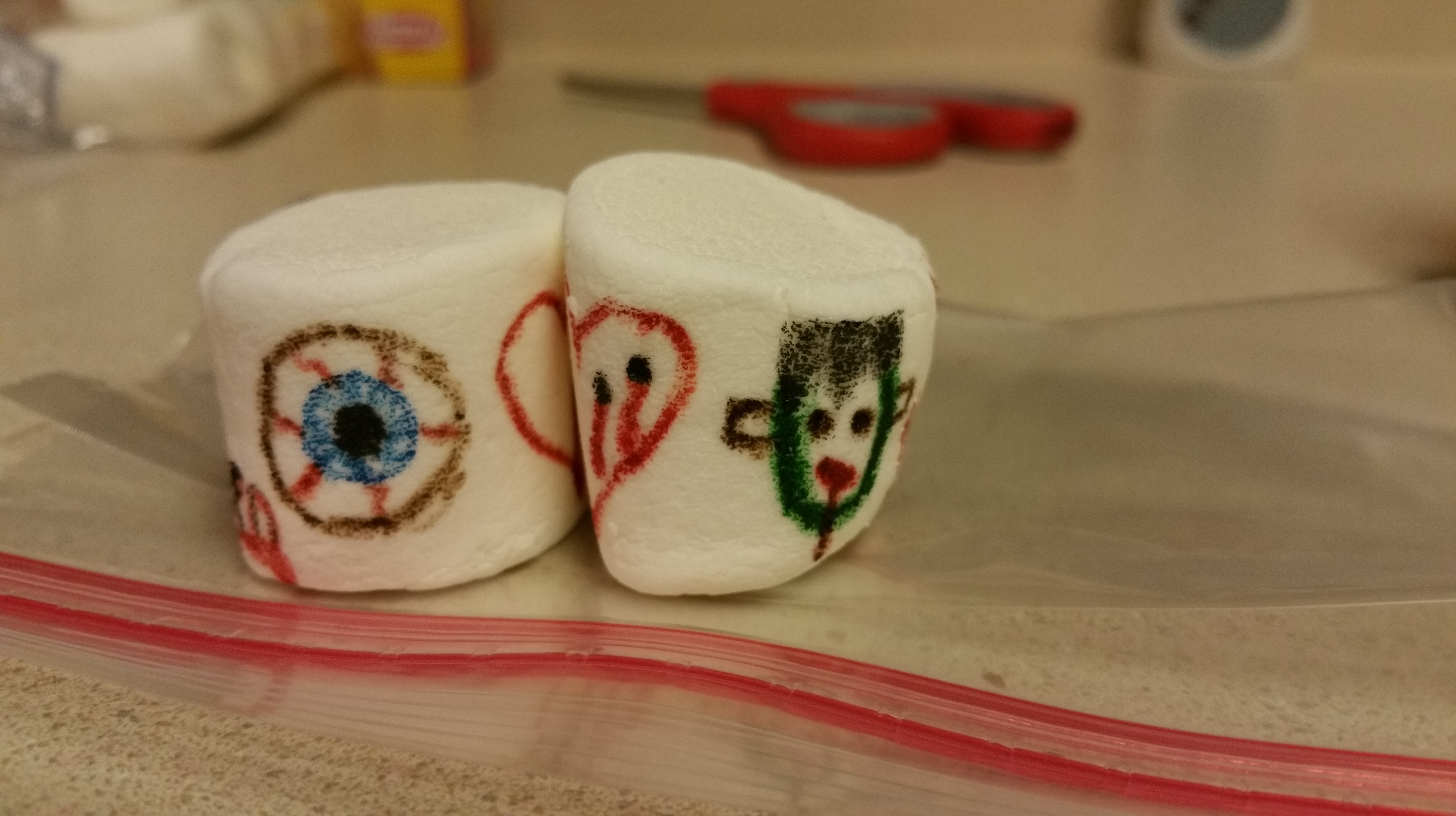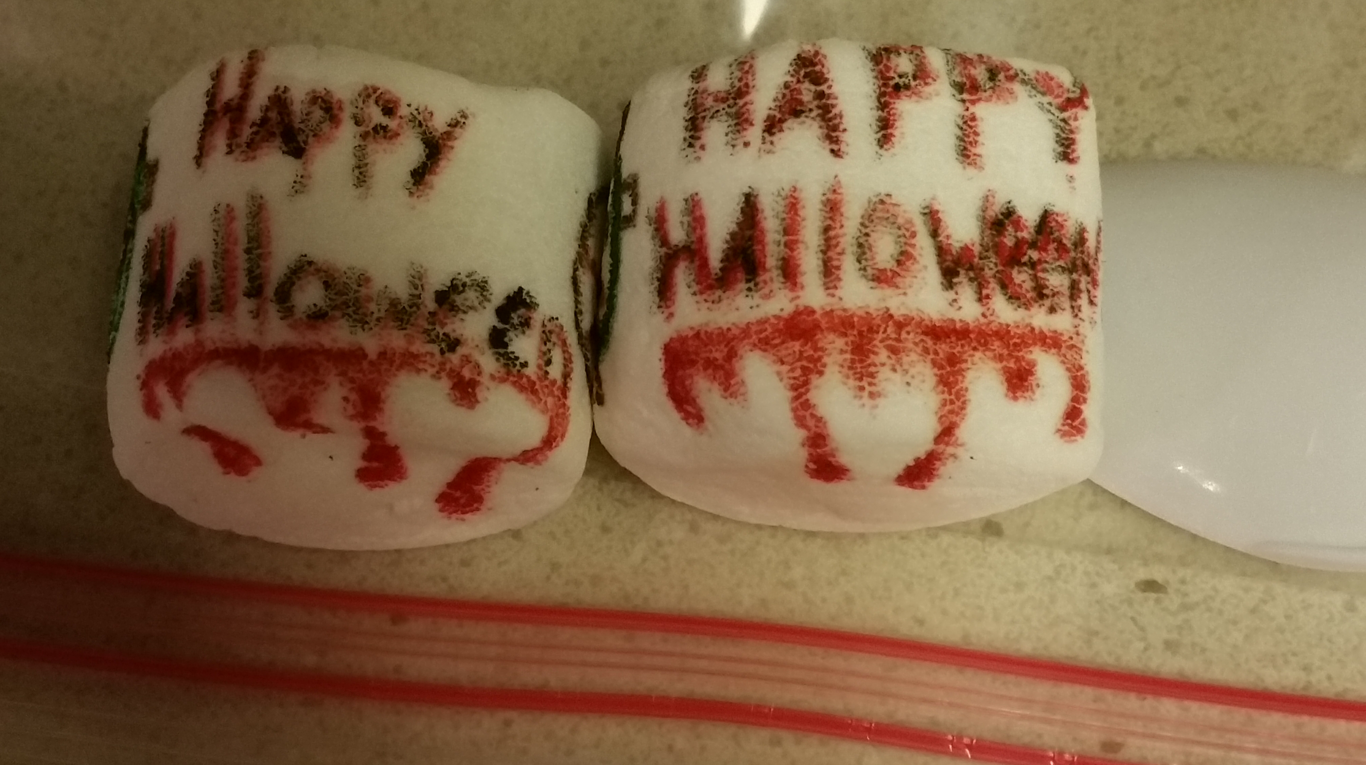If they have eaten all of the lunch I send with them, then I will decorate a marshmallow for them for the next school day. This week I did a lot of Halloween themed marshmallows.