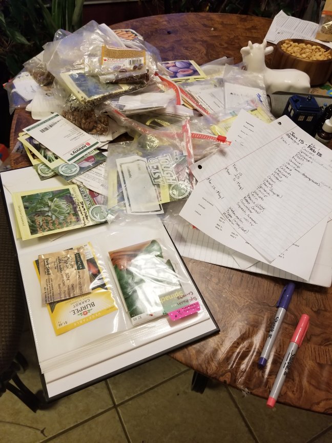 One is: I am reorganizing my seeds (AGAIN!) But this time: I’m organizing into start dates to match my phone organization calendar dates. This is what I’m hoping happens: phone calendar reminder goes off, I get my date organized seed out and wander into my garden prepared.
