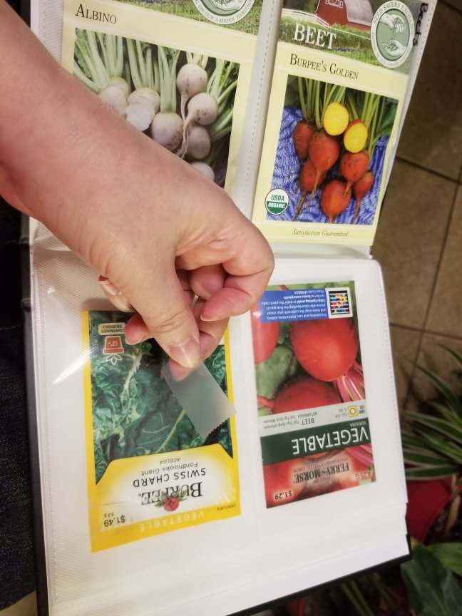 Some tips after having done this: don’t get a super cheap photo album. The photo sleeves will tear as you pull seeds in and out.