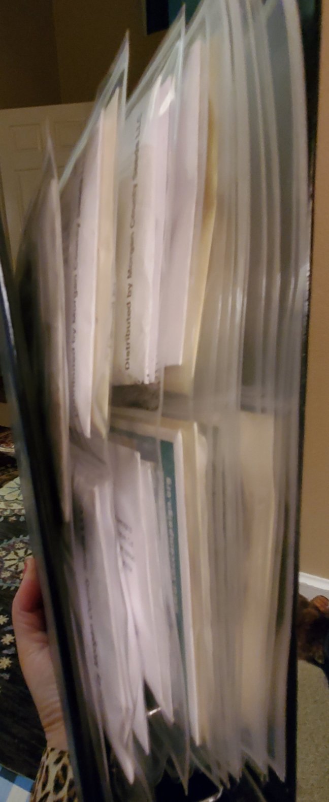 Find one with a wide bound area, preferably a three ring folder with sleeve inserts.
