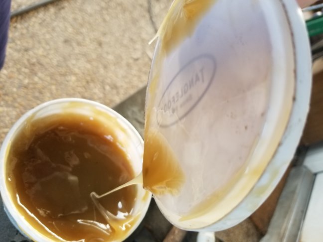 It’s thick like hot caramel and kind of colored similarly. Definitely not edible, though!
