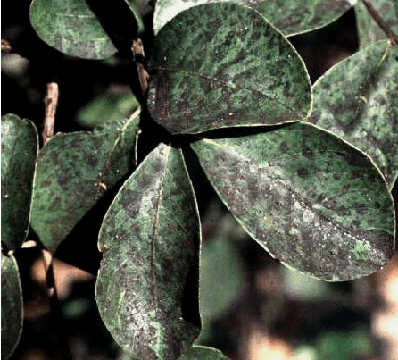 As the ants encourage and protect the aphids: the aphids excrete honeydew for the ants to feed on. As the aphids move, the honeydew collects on the leaves. Honeydew is sweet. Just like a hummingbird feeder will grow mold in the sugar water, honeydew’s sugar content feeds sooty mold. Your leaves will start to look black as the mold spreads across the surface.