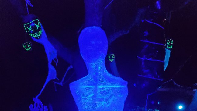 Faceless aliens, they’re life-size and seriously spooky. My son is dressing as one, this Halloween, to scare people coming to the door! He’s super excited! (I’ve included one photo with my son as an alien. Can you tell which one is him? I’ll show you at the bottom of the post!) You can learn how to make these here: Faceless Aliens.