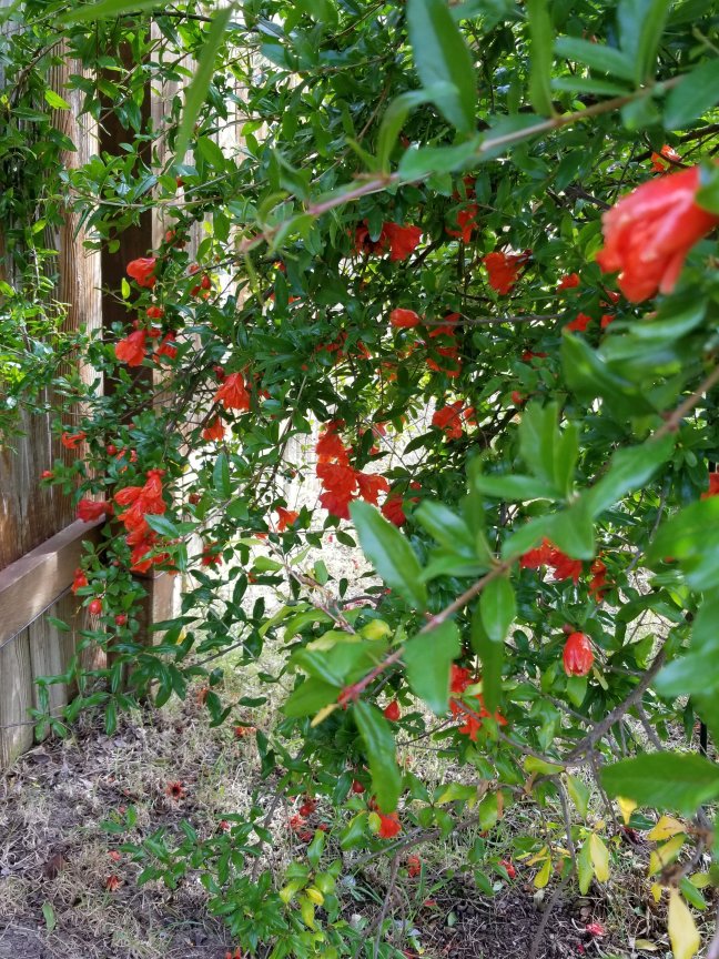 Keep in mind that this is a dwarf. There’s old homesteads out here with antique pomegranate varieties that get 20-30+ feet. Parfianka is a good size for a backyard fruit setting. I would not want to climb into the canopy of thorns to get fruit!