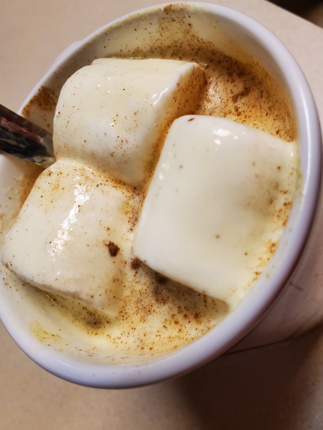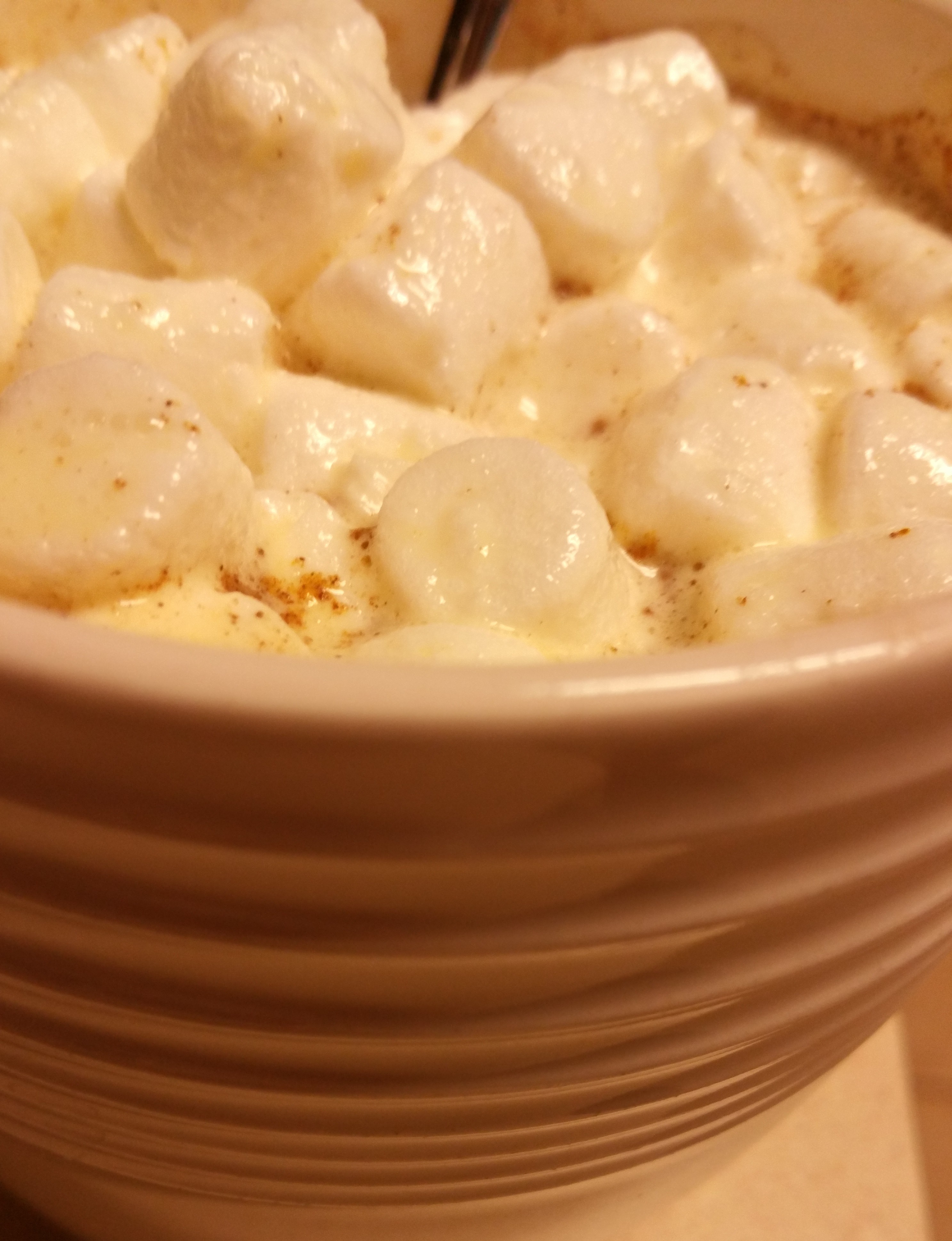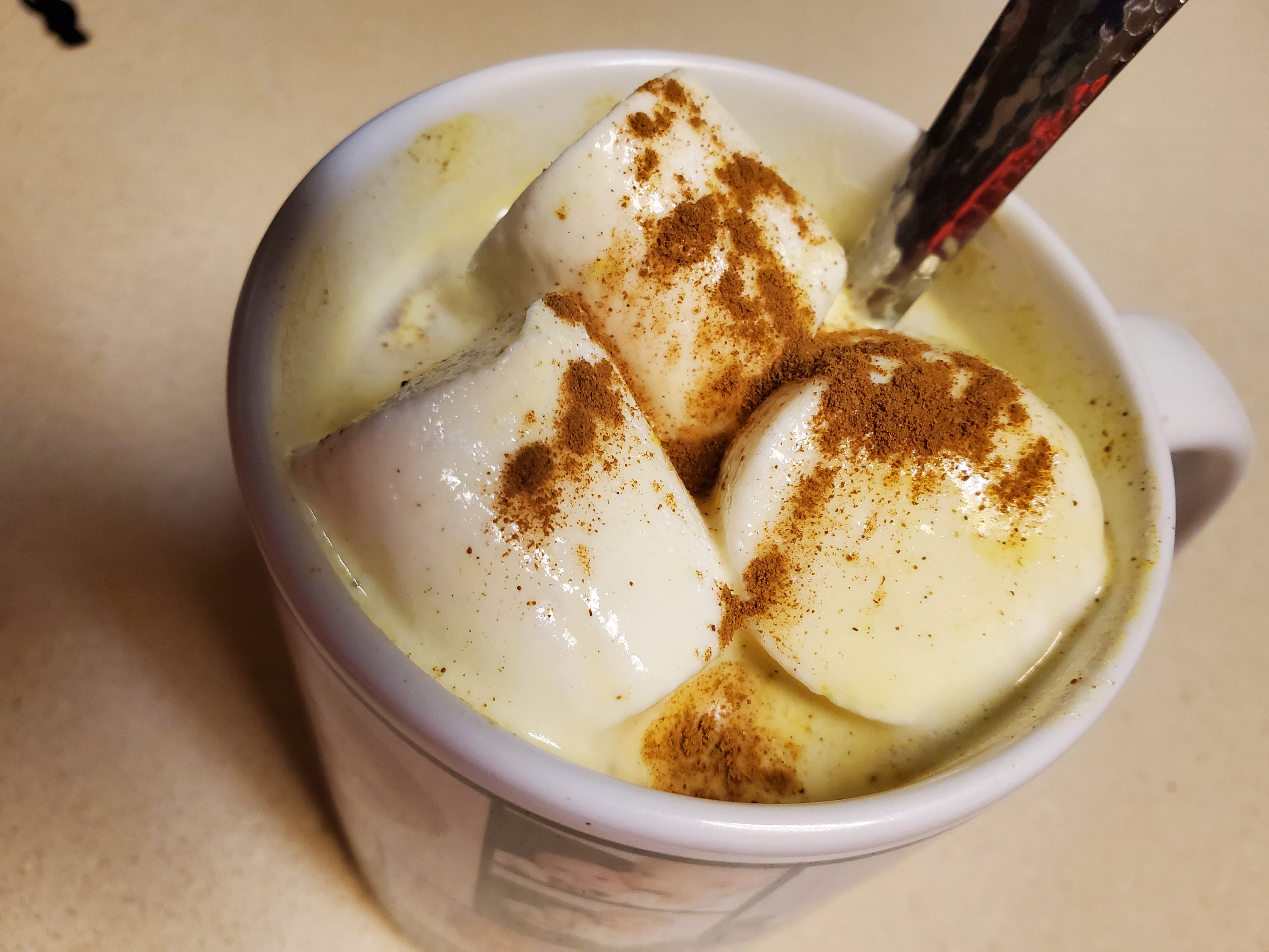 That is my cold/depression fighting, warm fuzzy, yummy, decadent way to get your daily dose of turmeric, vanilla, ginger, cardamom, cloves and cinnamon (and everyone deserves marshmallows when they feel yucky!) These should help you get well soon!