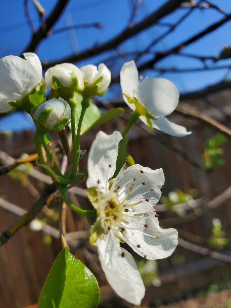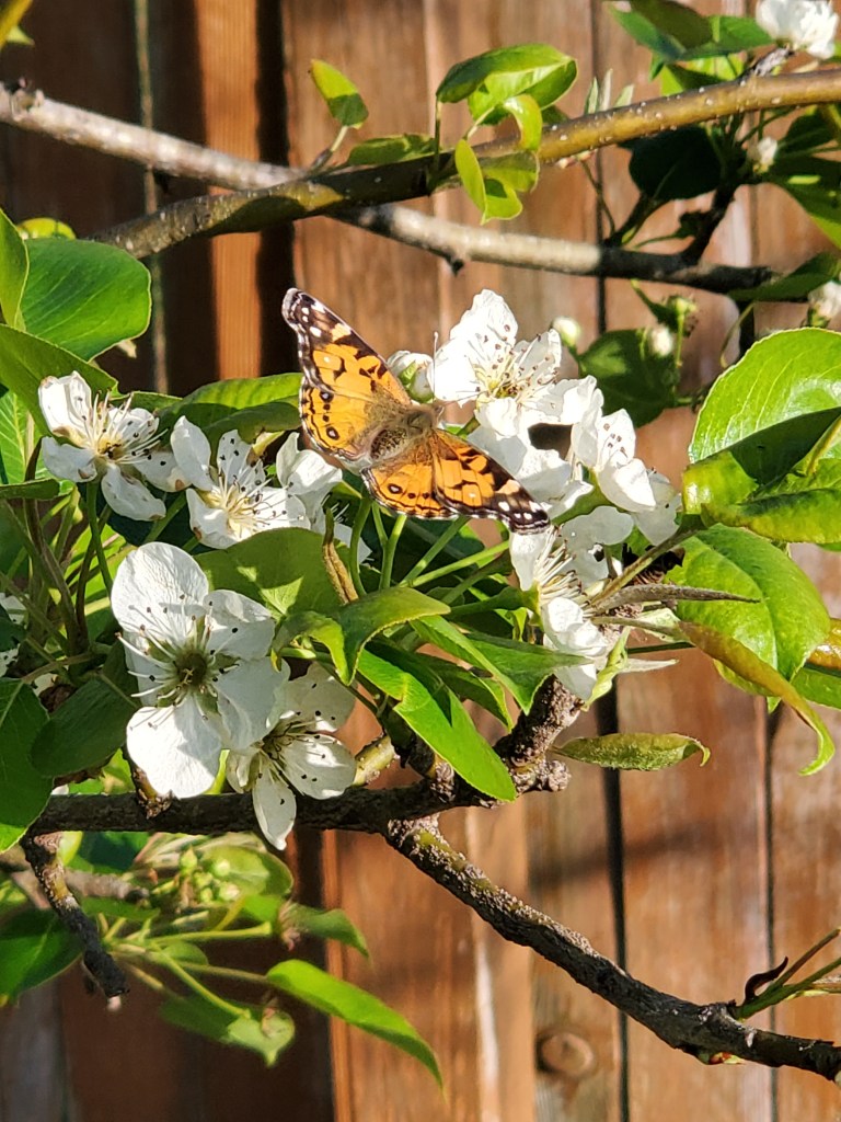 This year has been super mild. My pear tree is completely covered in butterflies and bees!