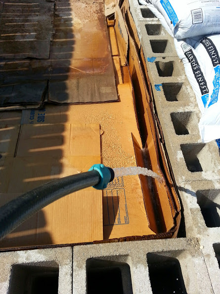 You need to wet this as you go. Cardboard and paper take a ton of water. It works well to step on it as you water. That will squeeze the air out and help your dry materials absorb the liquid.