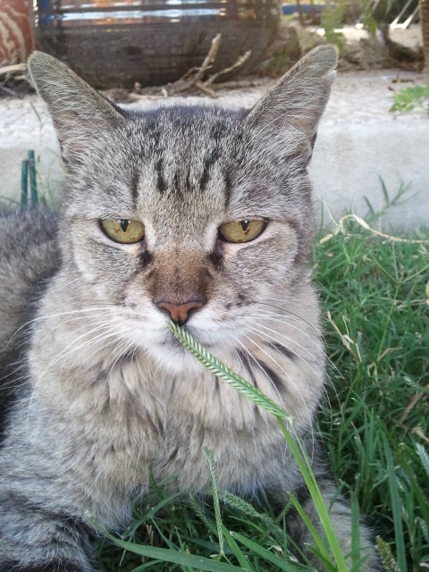 My cat is an antique. I rescued him as a kitten. He was up a tree at my mom’s. She was out of town at the time but offered this advice when I called her asking if I should rescue the kitten: “Leave him alone. He’ll come down. You never see cat bones up in a tree.” After three days I got out the ladder and brought him down. That’s when I noticed he had a puncture wound on his stomach (most likely from a coyote trying to eat him. That would make me stay up in a tree indefinitely, too!)