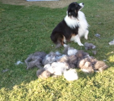 Huge chunks of rabbit fine undercoat dropping off onto the carpet. Daily vacuuming cannot compete with these random blobs of dog hair. My dog is the ultimate champ in all shedding events! In case you wondered: Australian Shepherds are an American based breed. I have no idea why he isn’t called an American shepherd. Probably just didn’t sound as cool!