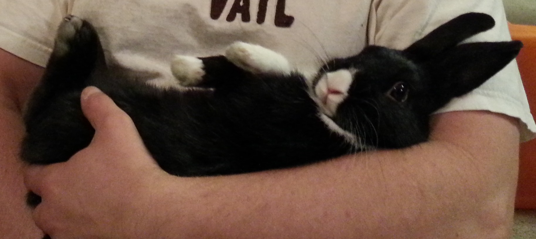 Our rabbit “Red” is a snuggle bunny. He was a gift to my kids for surviving a tough move, away from family, down to Texas. My then 5 year old thought naming a black and white rabbit “Red” was hilarious. I agree! I don’t have any babies in the house anymore. My boys are getting bigger. I still get kid snuggles, but our bunny is about the same size my boys were when they were born.