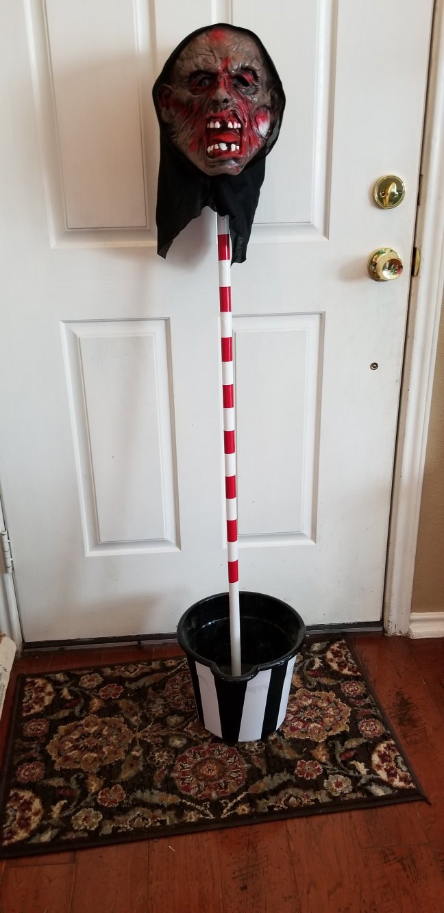 Styrofoam ball (on-line), styrofoam head (hobby stores) or a DIY head shape out of plastic bags inside a black trash bag (taped at the neck with the pole slid through the opening.)