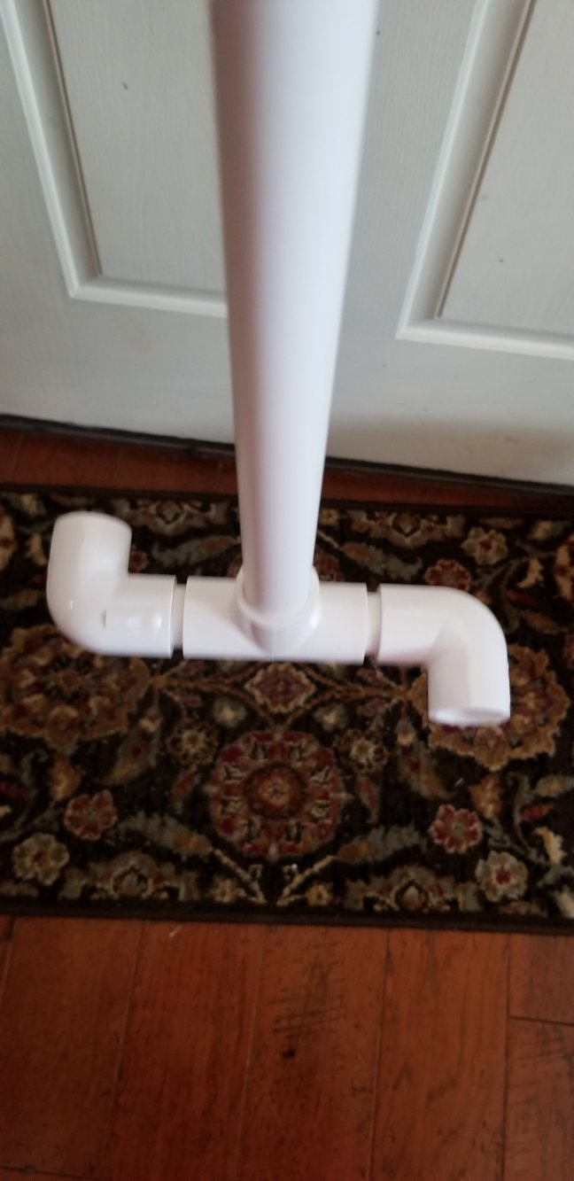 Next attach your elbows to the base you just cut. Make sure your base will fit in the bucket! Make adjustments until they do. The first one is just elbows and short pipe pieces. The second one I did was a 3 opening tee with two elbows at the end.