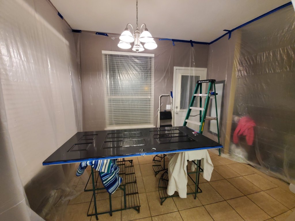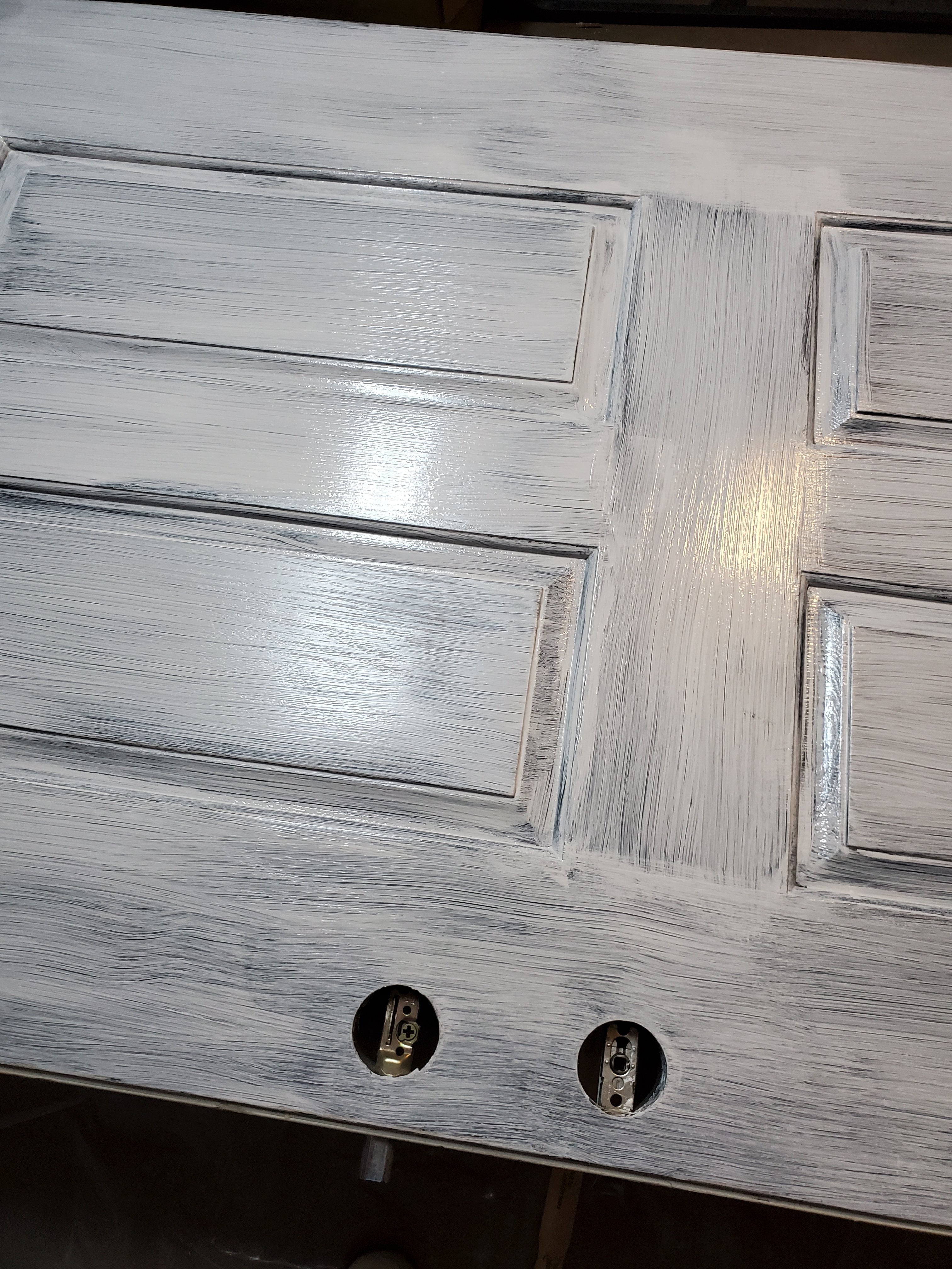 Despite all of our attempts, we could not find a way to resolve the issues we had with dust and fibers. I believe this frustration is similar to painting a piece of artwork. The artist always knows what they wished they had been able to do better, but no one outside of other professional artists see the flaws. I seriously doubt anyone but me and my mom will see these spots, especially once the door is hung and no super bright lights are showing every imperfection in the paint.