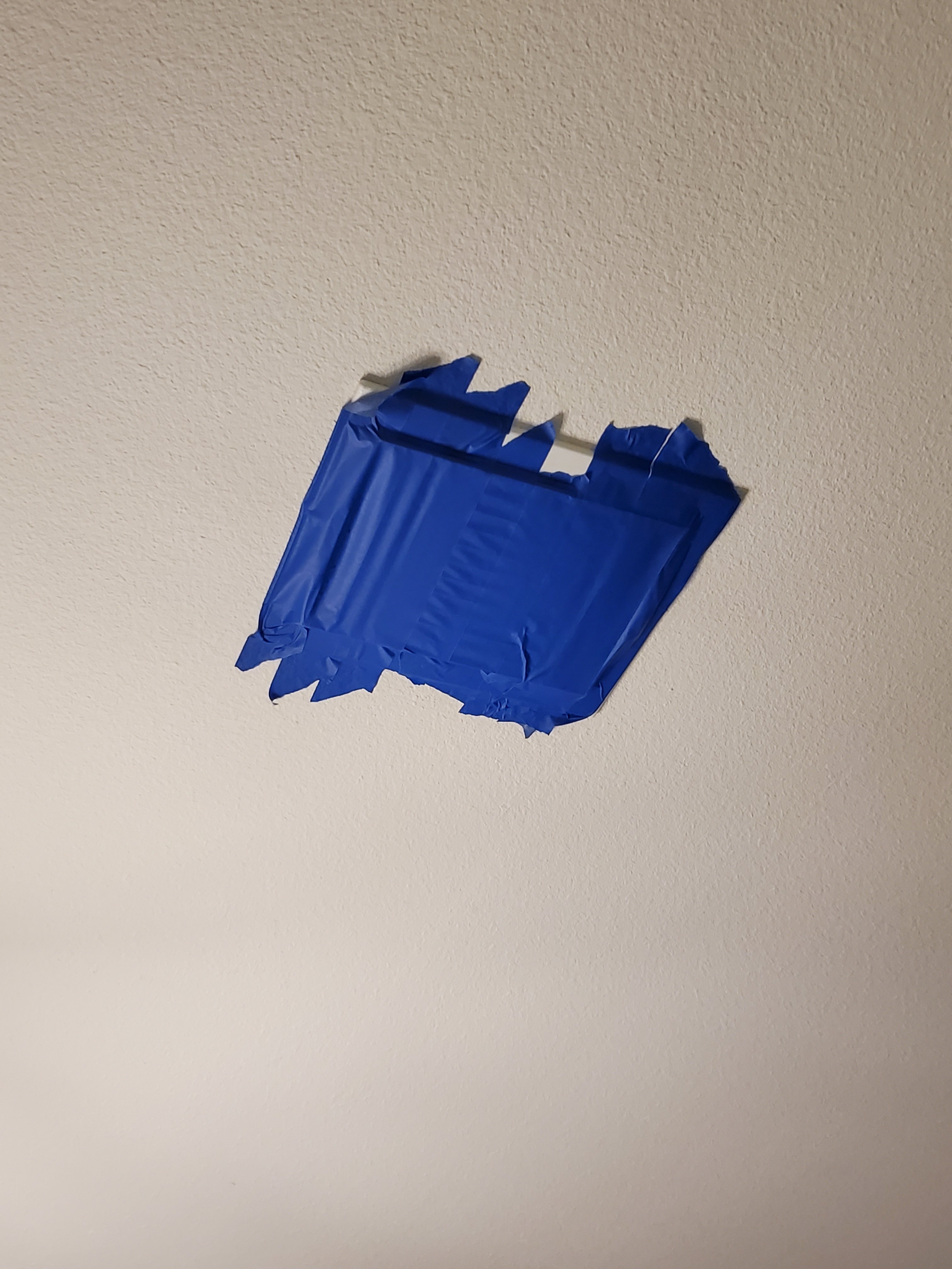 I didn’t want to tape a tarp up over my front door opening for that long. So, for safety’s sake: we went down to a Habitat for Humanity store and found a used indoor, 36 inch door that fits my front door. Most interior doors are narrower and won’t sit fully in a front entry door. Measure your door before you try to go get a temporary door. The interior door we bought was only 6 bucks. The exterior ones I could have purchased, that were the same size, (also used, at Habitat for Humanity) started at around $40. I didn’t need a door, after this project was over, so: I went with the cheapest option. The door I got is not made to be exposed to the elements, but this is just a temporary fix to keep burglars from just wandering in.
