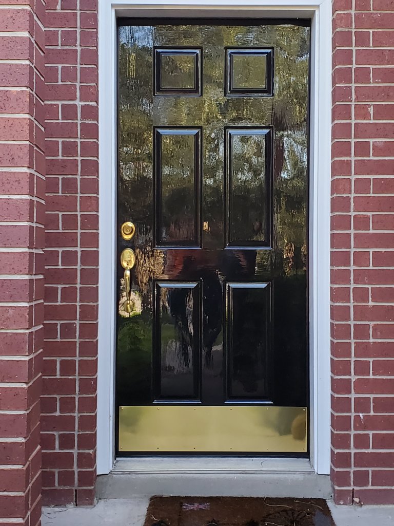 I will not be putting wreaths on this door. The finish would scratch and then I would cry. Instead I’m adding a brass door kick, a brass knocker, the brass hardware and a brass peephole. All of the brass will be coated in a layer or two of clear spray paint. This should be great for curb appeal and should really dress up the look of my home. If you take the precautions that I’ve listed, you will love this door kit. The paint is amazing. The finish is completely unique.