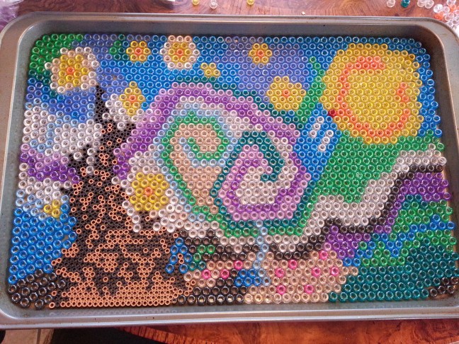 I also like a challenge and since I saw a pony bead version of Van Gogh’s Starry Night on Pinterest I figured I could do that as my grown-up craft.