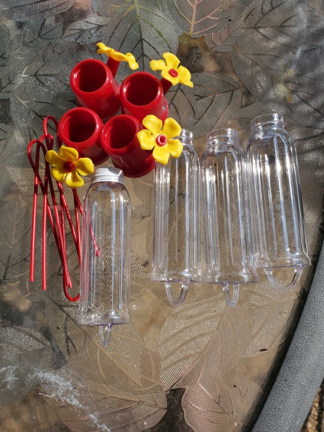 So, I was looking for options for this dilemma: feeders that were too big, hard to clean and wasteful. I found these: four fantastic feeders! Four feeder set These are perfect if you have high heat and birds that won’t share feeders.