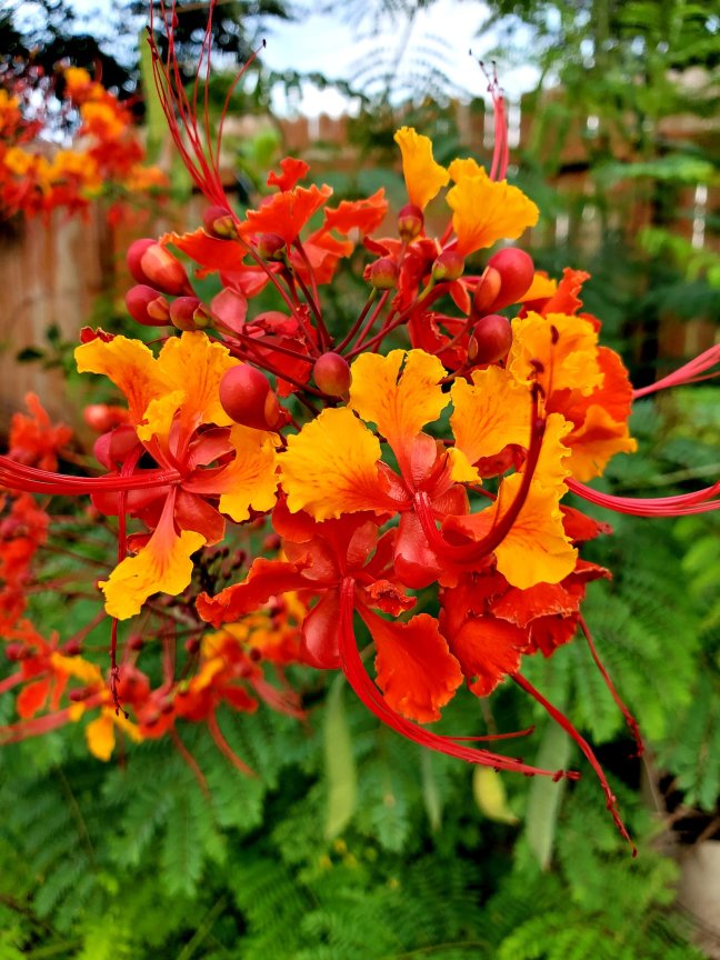 I love it so much I planted a bunch along the sunny south side of my house this year. I just can’t get enough of these flowers, and our local hummingbirds agree! These are easy to grow from seed. They produce bean pods (they are a legume and as such are nitrogen fixers, but the pods, seeds and leaves are poisonous) with super hard seeds that must be scarified in order to get them to sprout. I just rub one on a fingernail file until I see the white interior and drop them in a little bowl of water until they sprout. These plants are big and airy. With blooms on the tips of new growth, you will want to avoid pruning it. Full sun will get you extraordinary blooms. This really is a beautiful and impressive plant!