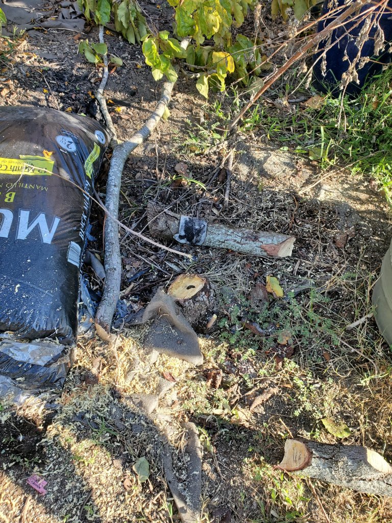 We cut out a sickly persimmon along with the peach tree.