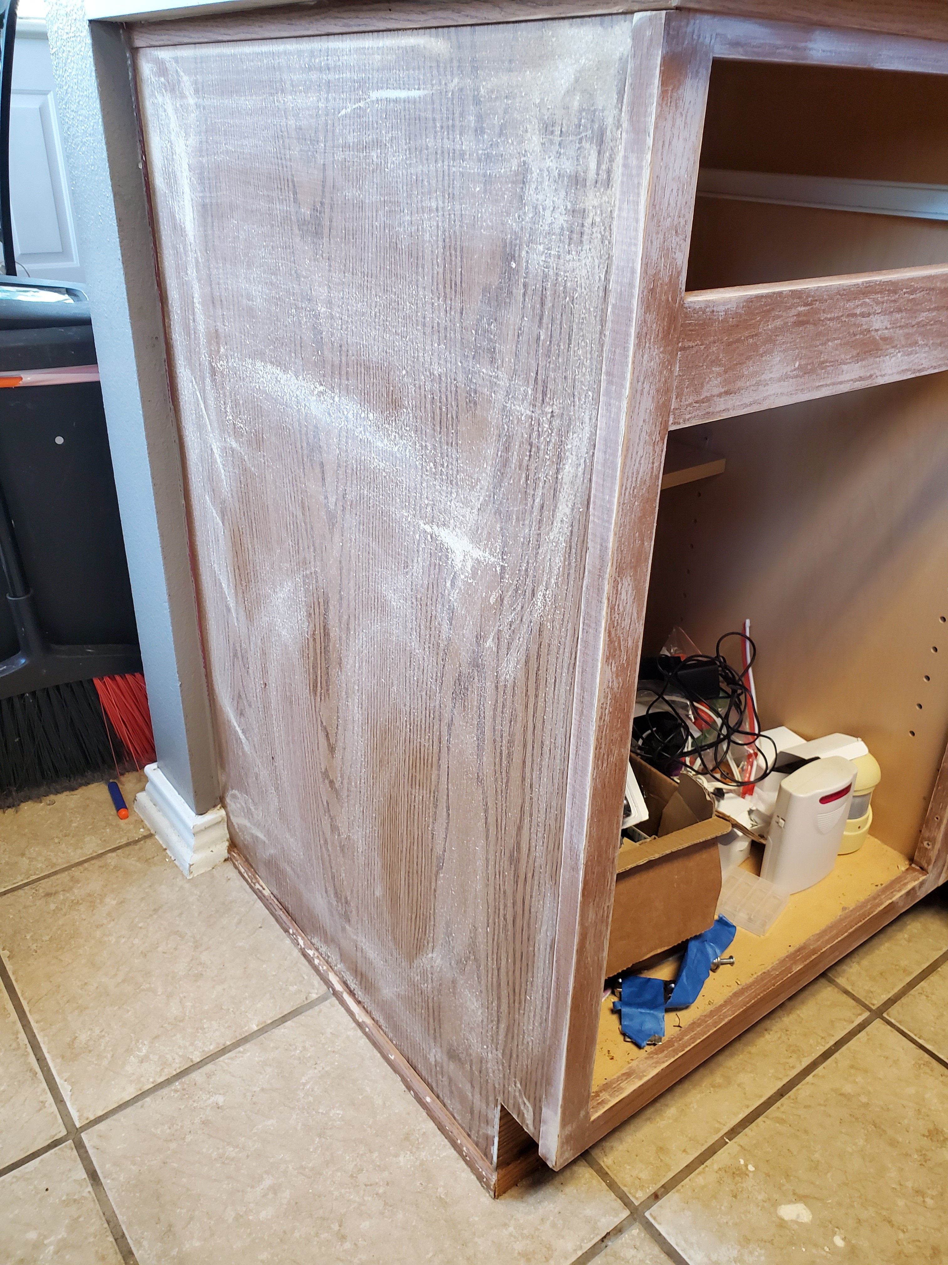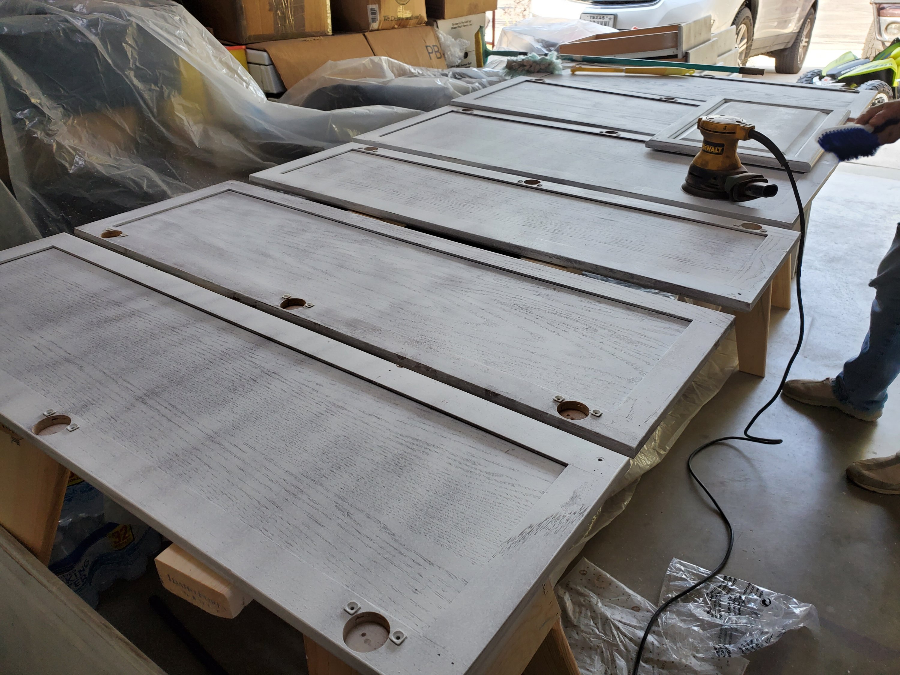 5. Sand the cabinet faces.