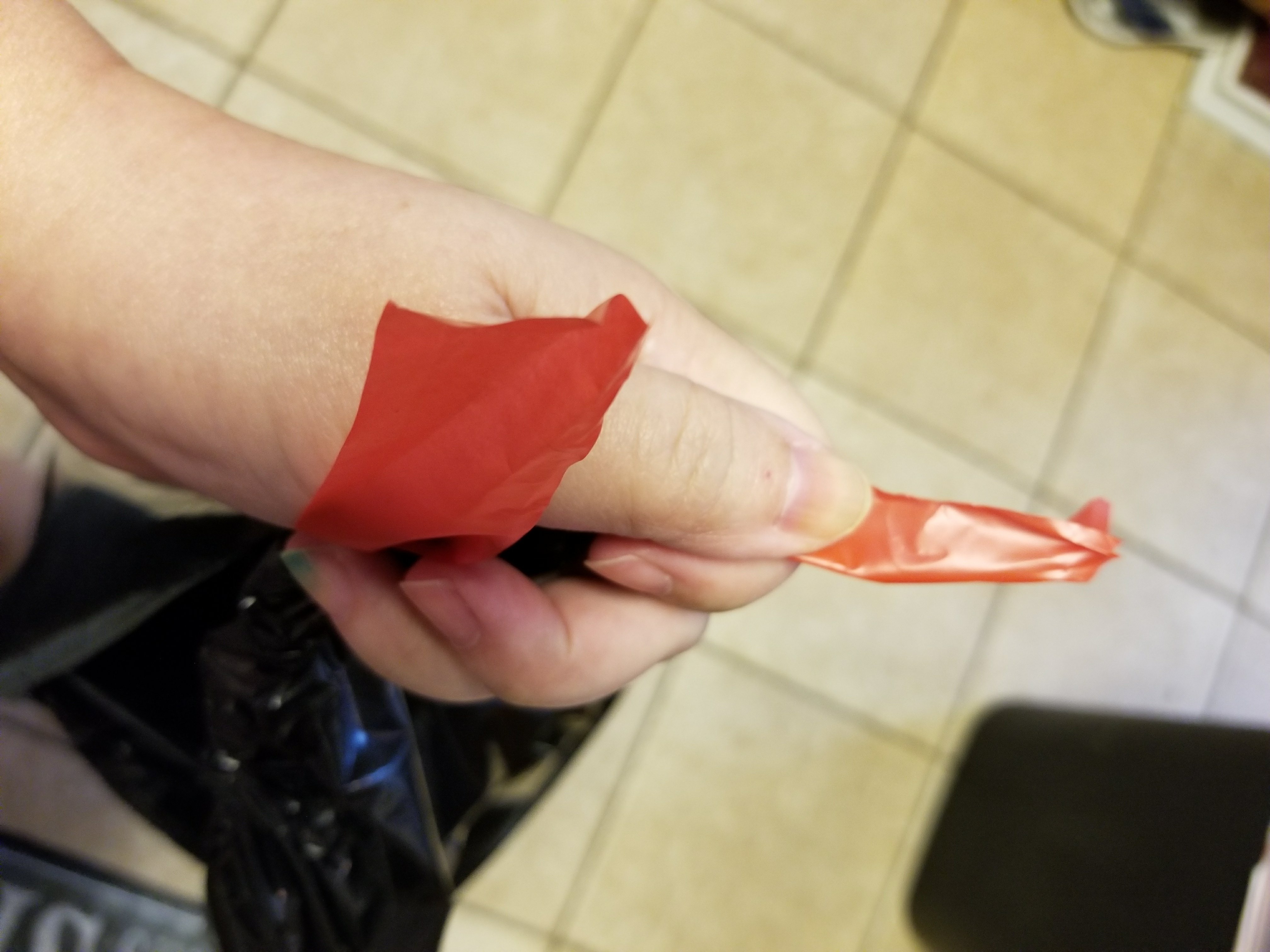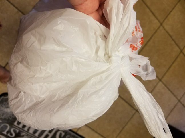 You can see the center cut that I made is how I tied this knot, while the outer edges of the bag are not tied yet.