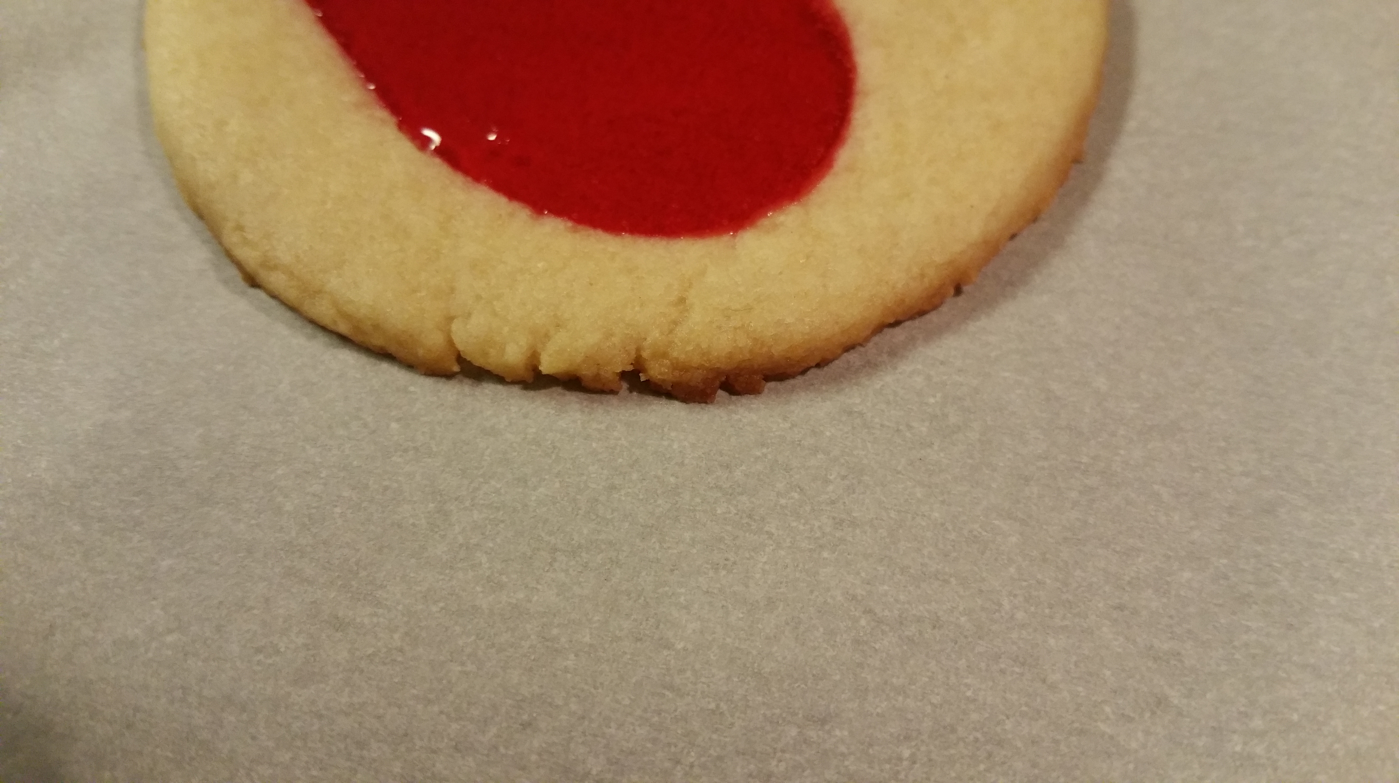 Hopefully, this will keep the candy from boiling up and ruining the look of the cookie. Keep an eye on your cookies after you put them back in. Watch for bubbling: which can ruin the cookie if you let it get out of the center of the cookie. You want the outside of your cookie to just start to brown. Take them out and let them cool a minute or so before you slide the sheet of parchment, with the cookies, off onto the counter to finish cooling.