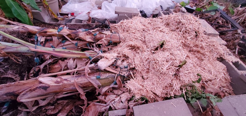 Full sized banana pseudostems are also full of gallons and gallons of water. So they are very, very heavy. Make sure you have help if you are trying to lay them down (or at least someone who can call emergency services, if it falls on you!)