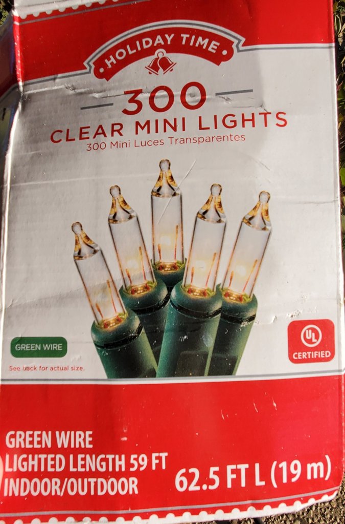 So, I’m using the mini Christmas lights. These need to be incandescent bulbs and not LED bulbs. Part of the reason LEDs are cheaper to run is: that they don’t waste heat when lit. Light and heat are closely related. “About 90% of the energy consumed by an incandescent light goes into generating heat, whereas LED lights create a low amount of heat. This is due to the way that LED lights are created.” (link)