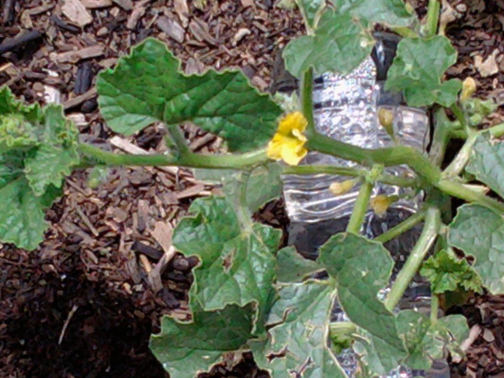 Early defiance garden. This was in Colorado. You can see the bottle of water planted next to the melon.