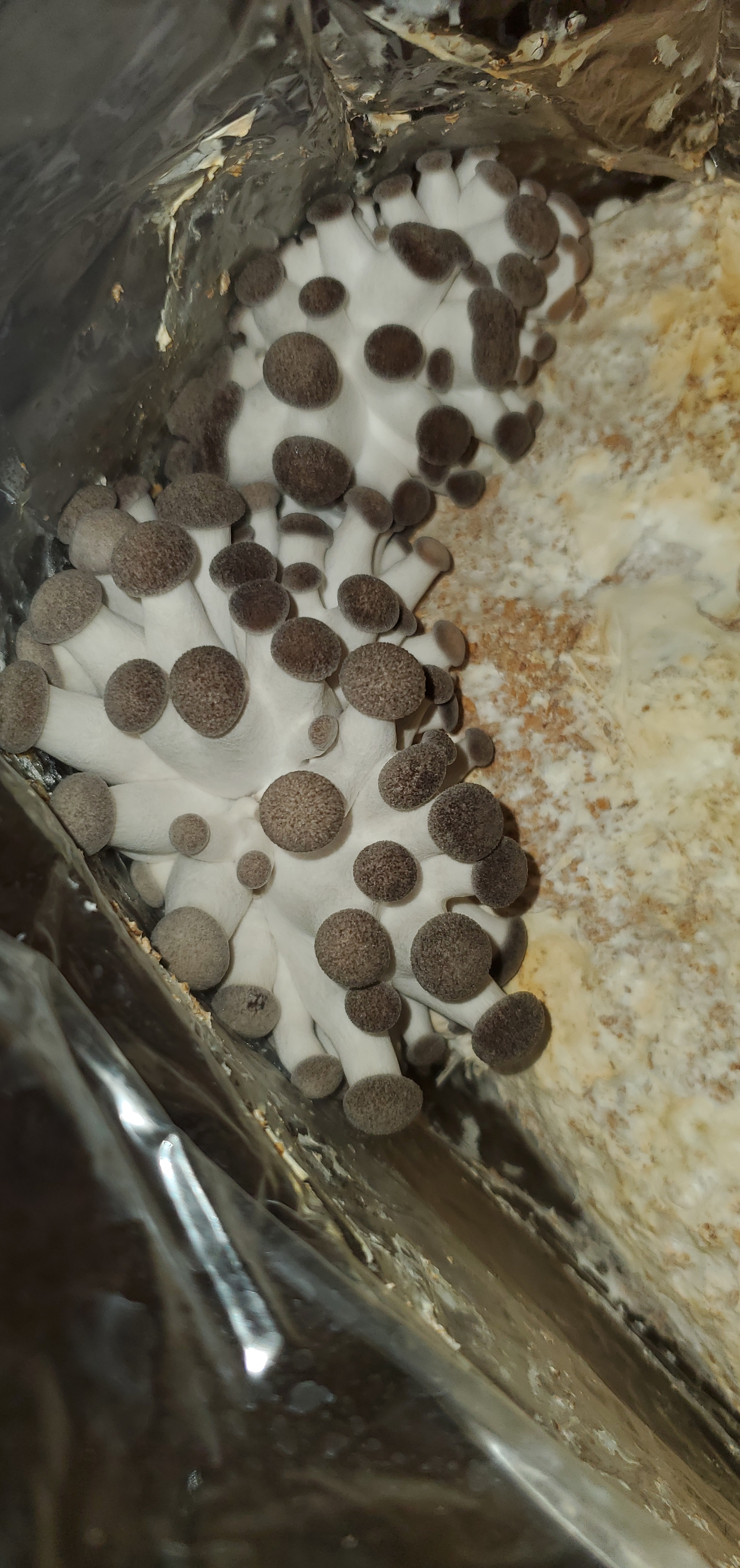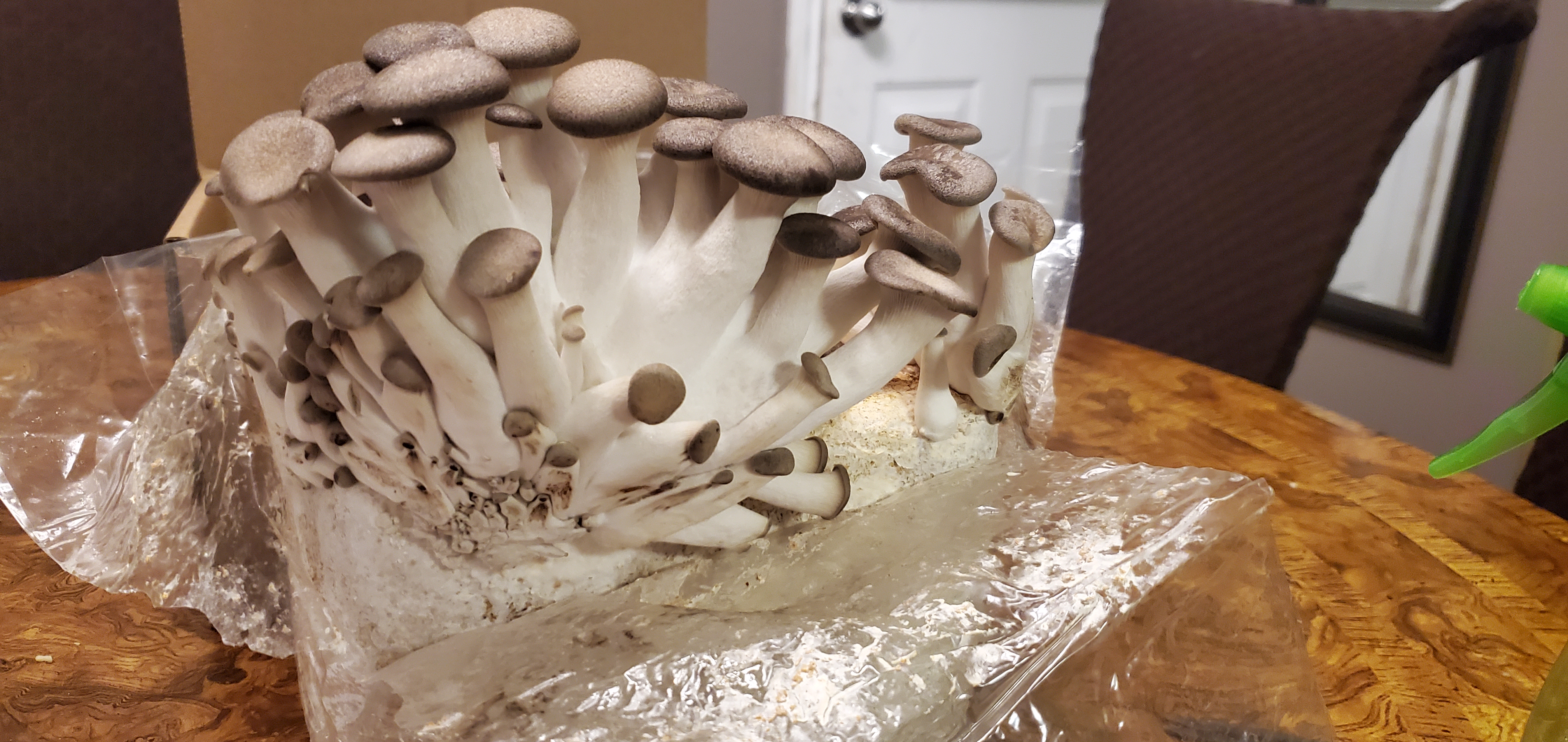 I grew mine in the winter, so our house was a little dry from heating the air. I also keep our home around 71 during the day, in winter, and 68 at night. This is slightly above what was recommended for the variety of mushrooms that I was growing. I also ended up cutting my mushrooms a little bit early, because it was becoming difficult to keep the mushrooms hydrated. The reason for that being: I had to cut the bag further down, so that the mushrooms on the side of the bag had room to open up. Otherwise they were smashed up against the plastic and were not growing.