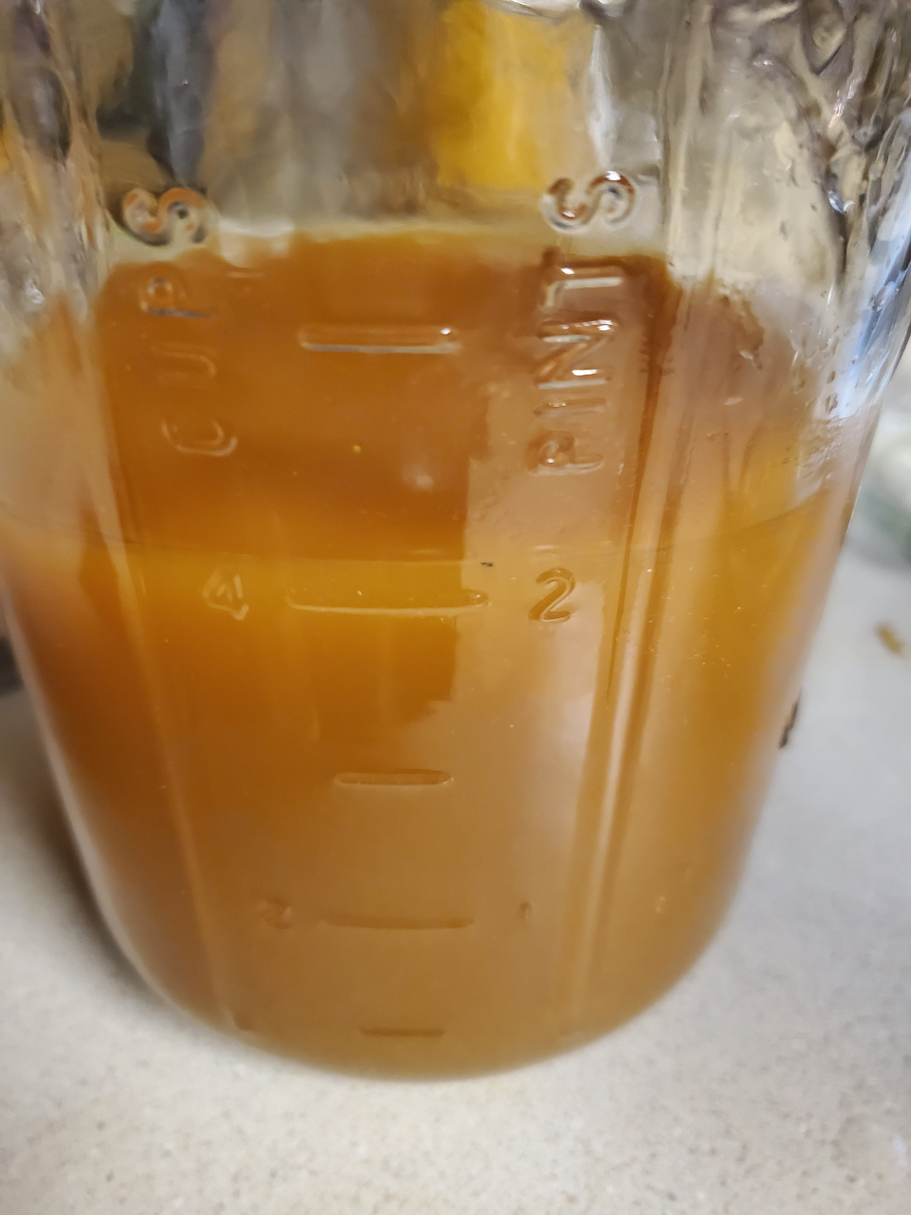 After 4 weeks: Take a cotton woven sack cloth, nut milk bag or several layers of cheese cloth and place it on the bottom of a large sieve or colander. Put the cloth covered sieve in a large bowl. Carefully pour the contents of the large jar through the sieve. Allow to drain. Squeeze the rest of the juices out of the cloth-bound solids. Put the contents into a glass container (I just reused my Mason jars) Add honey to your taste preference. (Honey will make this more palatable for kids) Add a cover to the jar (because this is an acid, do not use a Mason jar lid unless you put a piece of wax paper between the lid and the contents of the jar, or your lid will rust) Place your fire cider in the refrigerator. Use within one year. If you have the cider turn into something that does not taste anything like what you start with, or if you notice mold growth: I would suggest getting rid of it. However: the vinegar should keep the cider’s small suspended solids from turning and refrigeration should keep the vinegar stable for extended periods of time. Honey is a preservative as well, and does not go bad. The small particles will sink and separate after sitting. You do not need to shake this to take it.