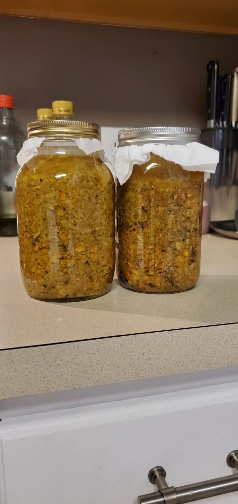 About a week into the 4 week ferment. I did not put hot peppers in my kid’s ferment, since I’d never get them to take it if I did!