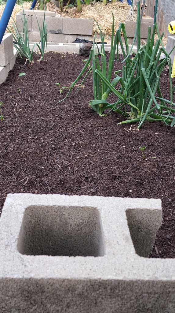 Some Egyptian “walking” onions and the compost that is over about 15+ bush, Porto Rico sweet potato slips. These always do so well for me and I end up with buckets of sweet potatoes in the fall.