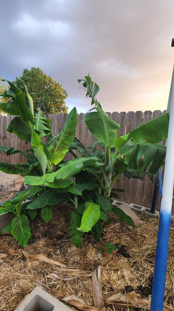 One end of the banana bed. These are Gros Michel and I will be dividing and moving these around. As long as I can get nitrogen on them they’ll be happy.