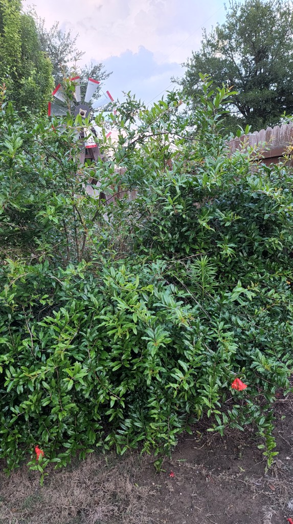 My crazy pomegranate that is getting on my nerves. It has decided its very happy, which is good, but I don’t need an entire yard full of pomegranates!