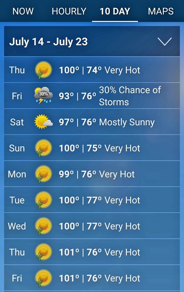 The worst part of our year is our insane summers. In July last year our heat hit 105°F. I tried to work in the morning the other day. It was 86 degrees. We had a sprinkle of rain that day and it just made the air turn into a sauna. The “feel like” temperature after the light rain was 95. You just can’t win down here in this heat.