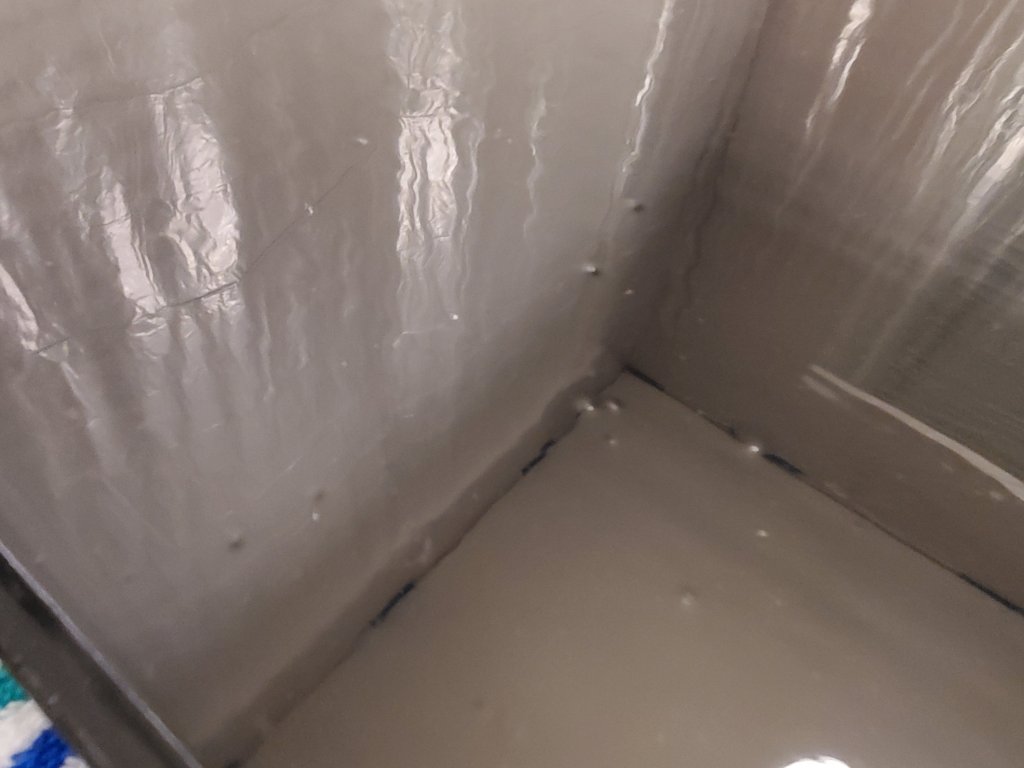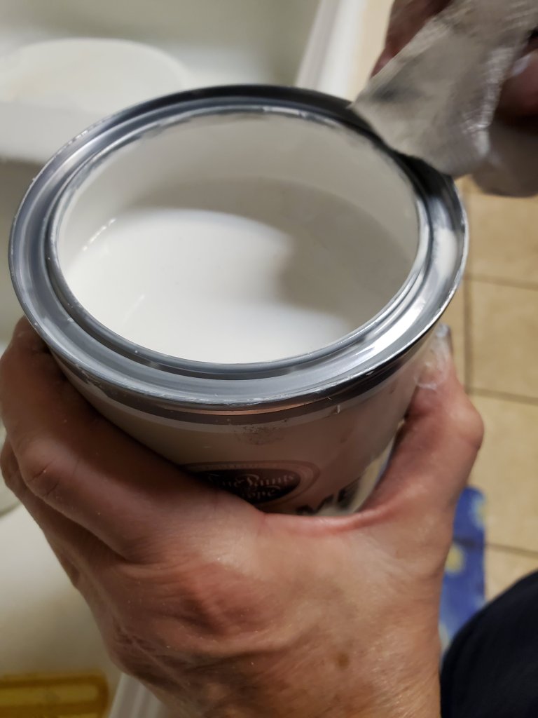 If you want to do this project my advice is this: create a clean room, spray the walls and floor with water during paint application, (do this several times until you can shine a very bright bulb and you don’t see dust passing through the beam of light) and when the paint is still curing, do NOT overwork the paint. If it’s not perfect: do another coat once it dries instead of running your brush back through it while it’s starting to set up, I didn’t sand between the last two coats and it was super hard to tell what was wet and what was dry, so try to remember where you’ve been, use a small foam brush for the drips in the corners (if your door has details), don’t bring in crazy bugs on the support for the door 🙄, get a space heater and heat lamps and run them during the day to speed up the enamel curing process (when you can keep an eye on the lamps and heater. Don’t do any heat overnight. There’s too many fumes and flammable plastic to run this stuff while you are sleeping), don’t apply the paint really thick because it won’t dry, don’t apply the paint really thin because it will not self level. After 4 coats we could have redone this from scratch with just two coats. There’s a learning curve (hopefully these instructions will help with that), do not allow your pets in the same room as the door, and wipe and wipe and wipe (and check in between wiping with a high powered light bulb to catch anything that drifts in or that your tack cloth leaves behind) before you add another layer of paint.