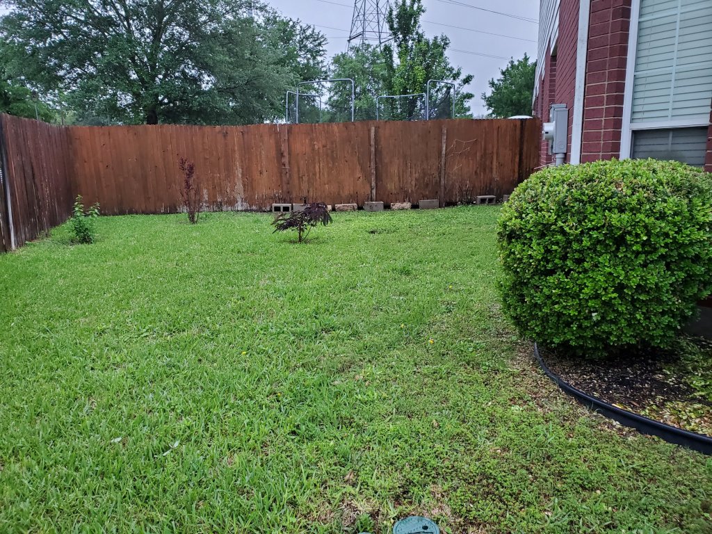 Anyway. Before you start this project know that your replacement door will probably not line up to just exchange knobs and dead bolts (and mine were so difficult to replace I had no interest in taking them on and off repeatedly!) Plan to not have your replacement door up for high wind and big storms. Your door won’t last long in high wind. We considered screwing the door into the frame with long screws but eventually decided, as long as there wasn’t high winds, the way we had it was fine. If you are in a high crime neighborhood, I’d screw the door into place. Plus. My stupid fence fell in the wind. So there was even more to fix than the door, from the storm.