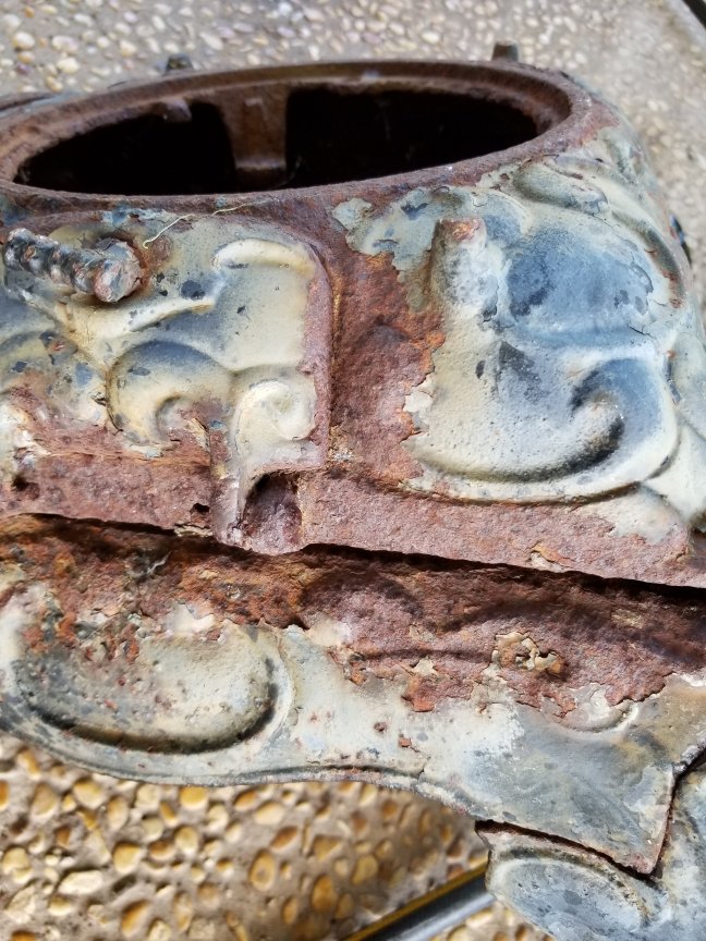 Cleaning the base took me about an hour and a half. I got all of the rust flakes off and was able to follow the decorative areas with the scraper sides. The scraper worked well to remove the rust built up on the swirls and flourishes.