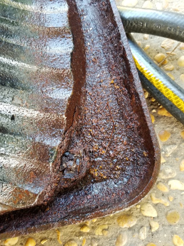 Is a stronger acid better than the extra strength vinegar? Well, it might be faster, but it won’t be as cheap (I would also be concerned about a stronger acid eating away the good iron.) You can even find stronger vinegar acid online. But the fumes would concern me. The extra strength vinegar we bought is 3 dollars a gallon. I used 4 gallons of extra strength vinegar to 4 gallons of water and I can soak about half of the base of my stove at a time. I used 8 full gallons of vinegar, and half of another, but I was concerned that the container I used would leak (there’s a thin area on the bottom). I saved 4 full gallons and I will add them if the 1:1 ratio ends up being too weak.