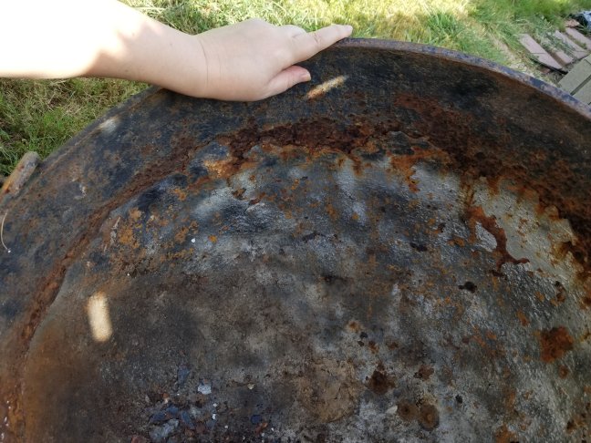 My twelve year old going after the rust while I took a break. It was above 100 degrees Fahrenheit out.