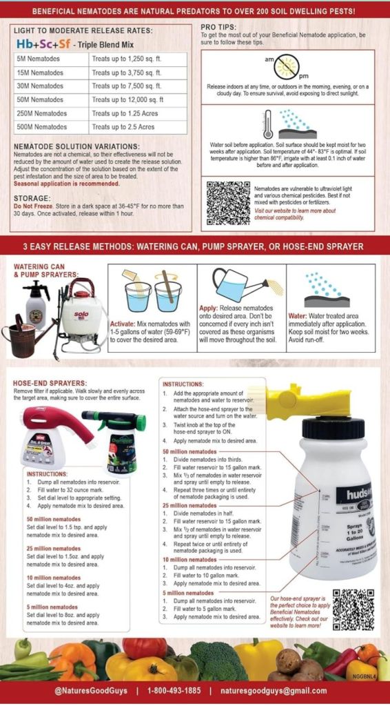 I also water before and after application to get them down into deeper soil levels before the sun and heat cook the little guys.