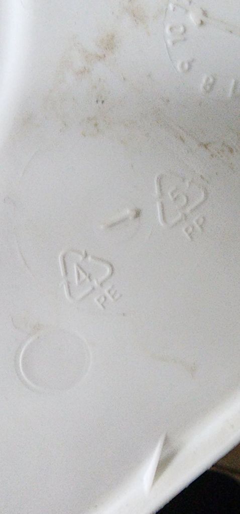 So: One – You need buckets with lids. Most people are buying buckets from retailers. If you have cats: buy your litter in plastic buckets. Before you gross out, cat litter is mostly clay. Wash them out with dish soap and you are closer to the end of your project. I get our brand of litter from Petco. We have two cats and I haven’t wanted to throw those buckets out. Now I have a use for them. Look at the bottom of your container. Mine are food safe. Numbers 2, 4 and 5 are considered very safe for food, doesn’t really matter what the letters after the number are. If you don’t have cats, you can get used pickle buckets from firehouse subs for a few dollars (you could also try bakeries and ask for 5 gallon frosting buckets) or get the 5 gallon buckets from hardware stores which are about six dollars for the bucket and two for the lid. That would add up quickly and this is becoming a trending project so I don’t know how long restaurants will have these available.