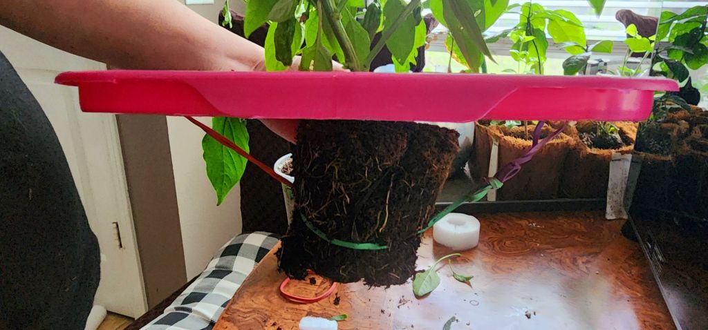 If you have a plant start to wilt, take the bucket apart and see if it is dried out and not touching the water. Adjust the root ball to just touch the water and watch it. I have also found that about two weeks in: the paper towels had completely dissolved and the buckets need to be dumped and new water added. I’m hoping this isn’t continuous and I won’t need to dump them regularly, but, I may. I’ll let you know as this goes.
