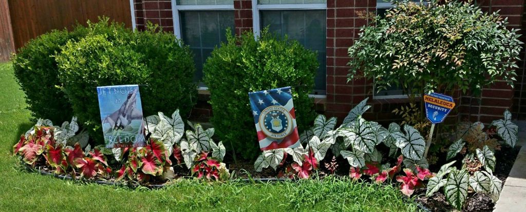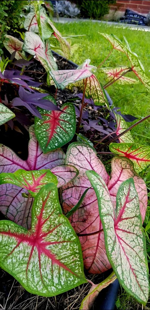 Some years: I add begonias. They will make it through our heat if they are planted early. I also like to grow caladium and Ipomoea (aka sweet potato vine), for the foliage but they are annuals here.