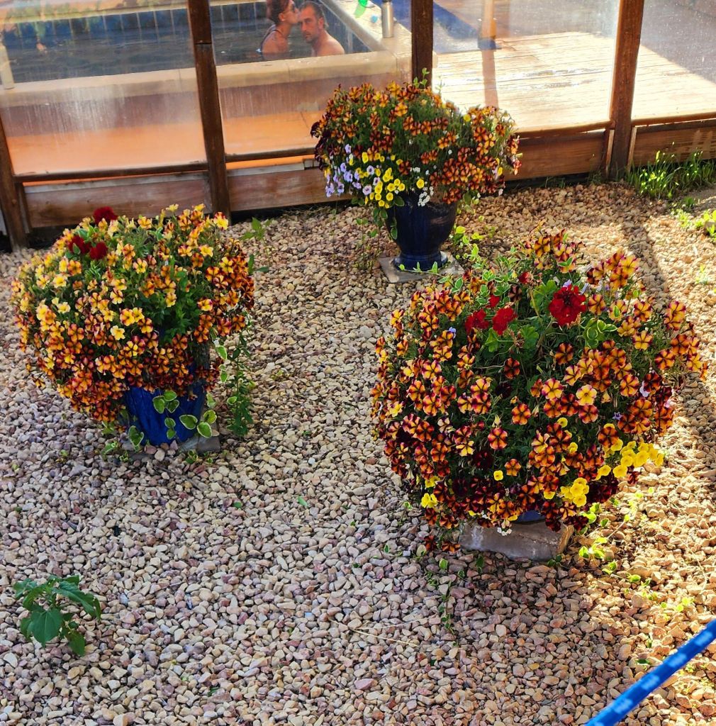 The place we went is called “Joyful Journey Hot Springs”. They have a package that you can get with massages and other spa related activities. You can stay there. They have yurts, teepees and individual rooms. If you drive EV they have complimentary charging spaces. The sides around the pools are plexiglass and you can watch the wind blow through the desert plants, watch butterflies flit around and look out further at the mountain range. So relaxing and beautiful! The surrounding walls also seemed to keep the mosquito population out. Everywhere else we went, there were swarms of mosquitoes. But not inside the hot springs area.