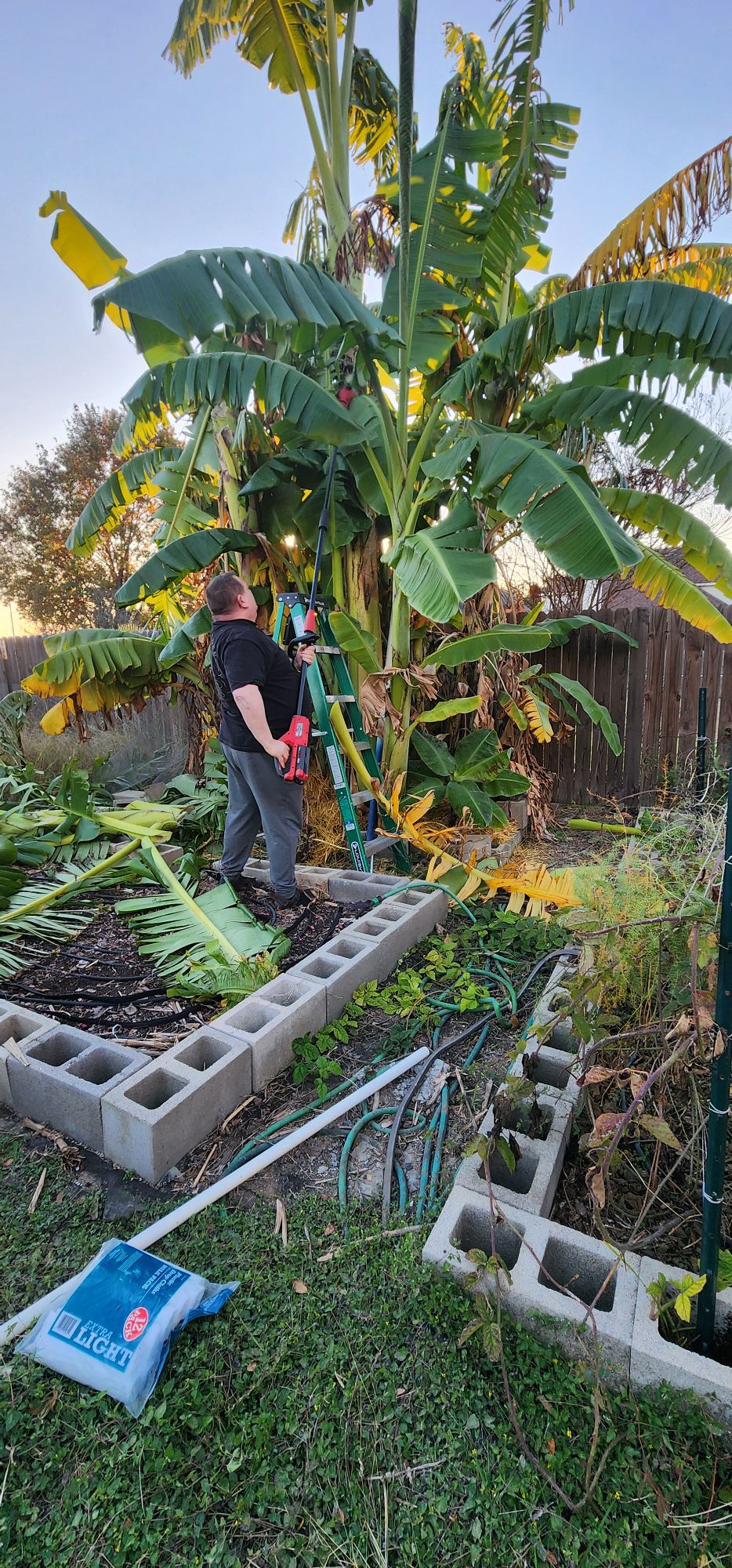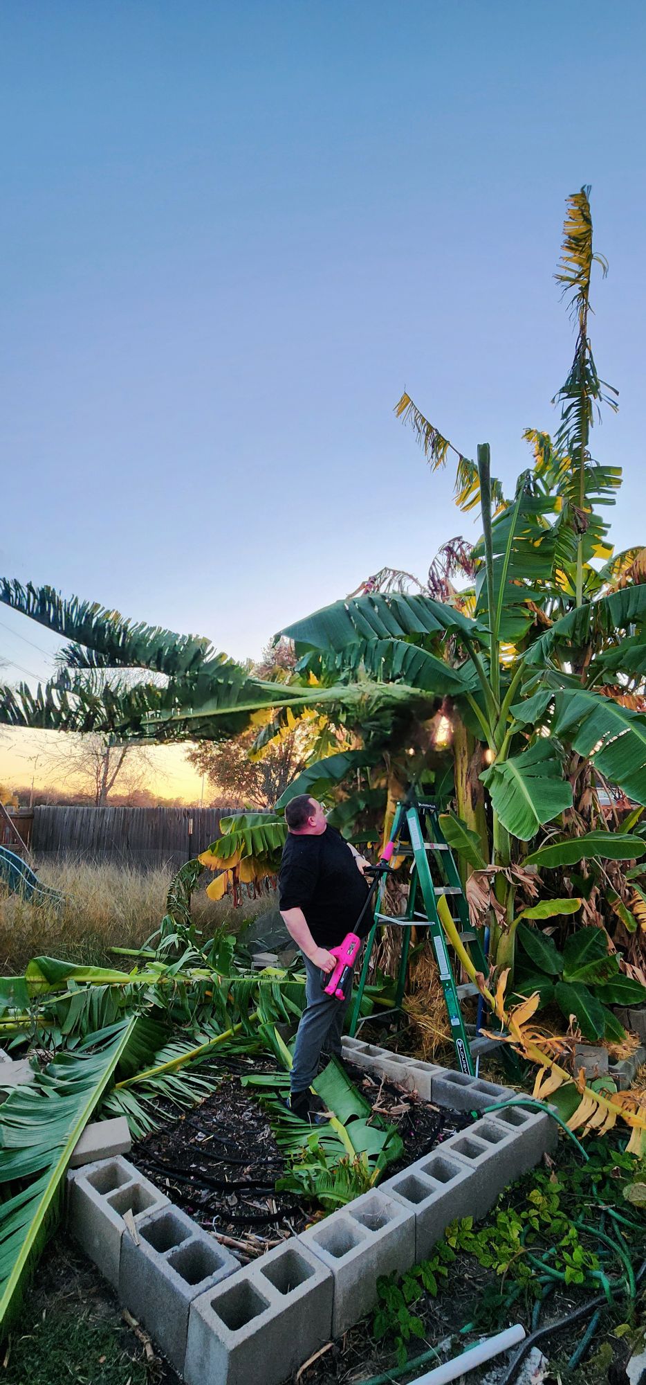 1. Yesssss. Bananas are sneaky like that. But, staying on top of sucker’s and limiting the amount of full sized growth these put out finally got me fruit. I’m in my 50s and doing this much sawing is a big deal. This is the first year I’ve insisted someone watch me do this in case I hurt myself. My years of taking care of the bed like this are numbered. It’s why I was super excited about the extension chainsaw. But, alas, no. It just made a mess, was too short to cut through and bogged up with the strands. I’ll try something else next year. Good to see you today! Merry Christmas!